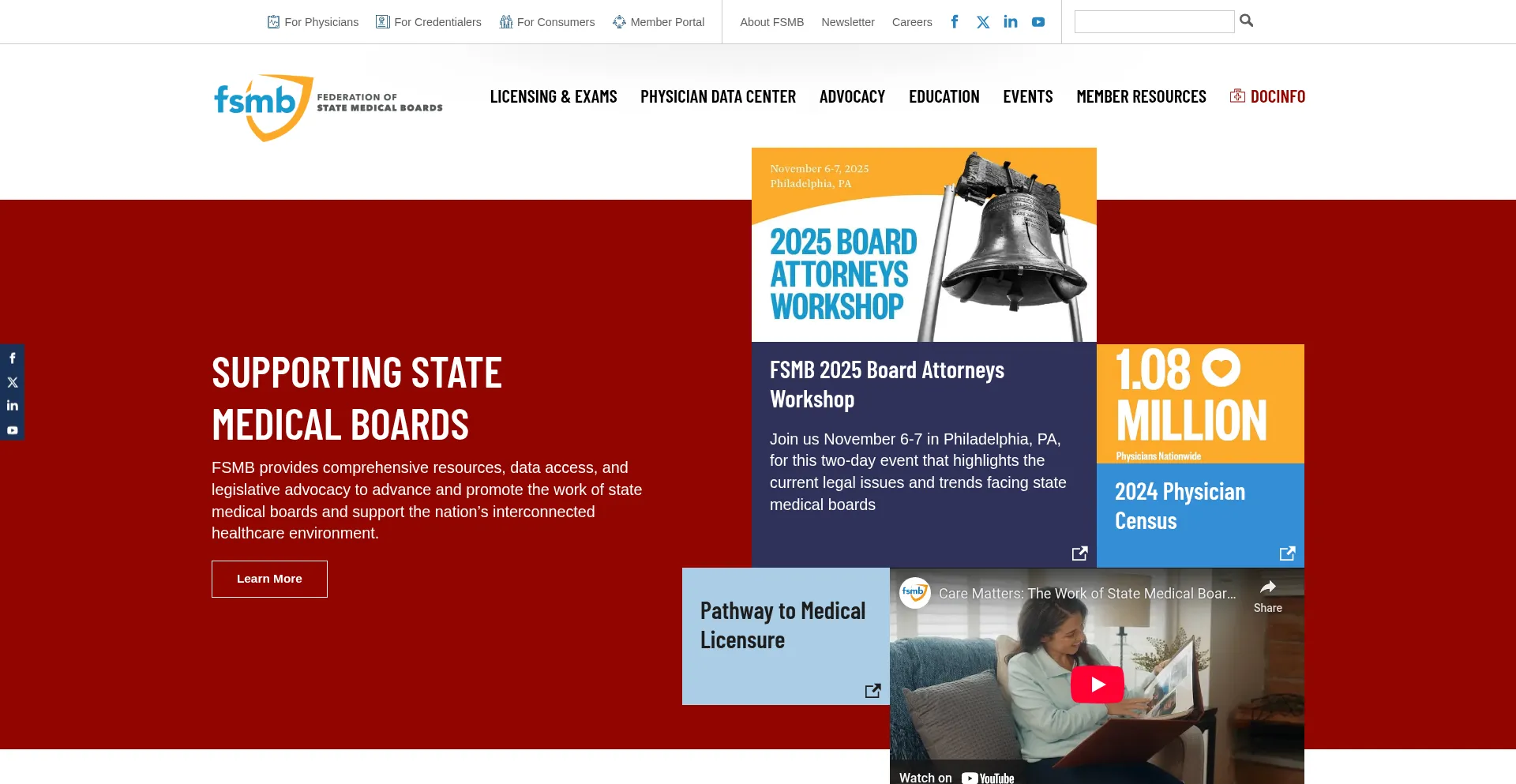 网站上存在社交媒体链接表明 fsmb.org 在社交媒体上维护官方账户,这是可信度和参与度的积极信号。