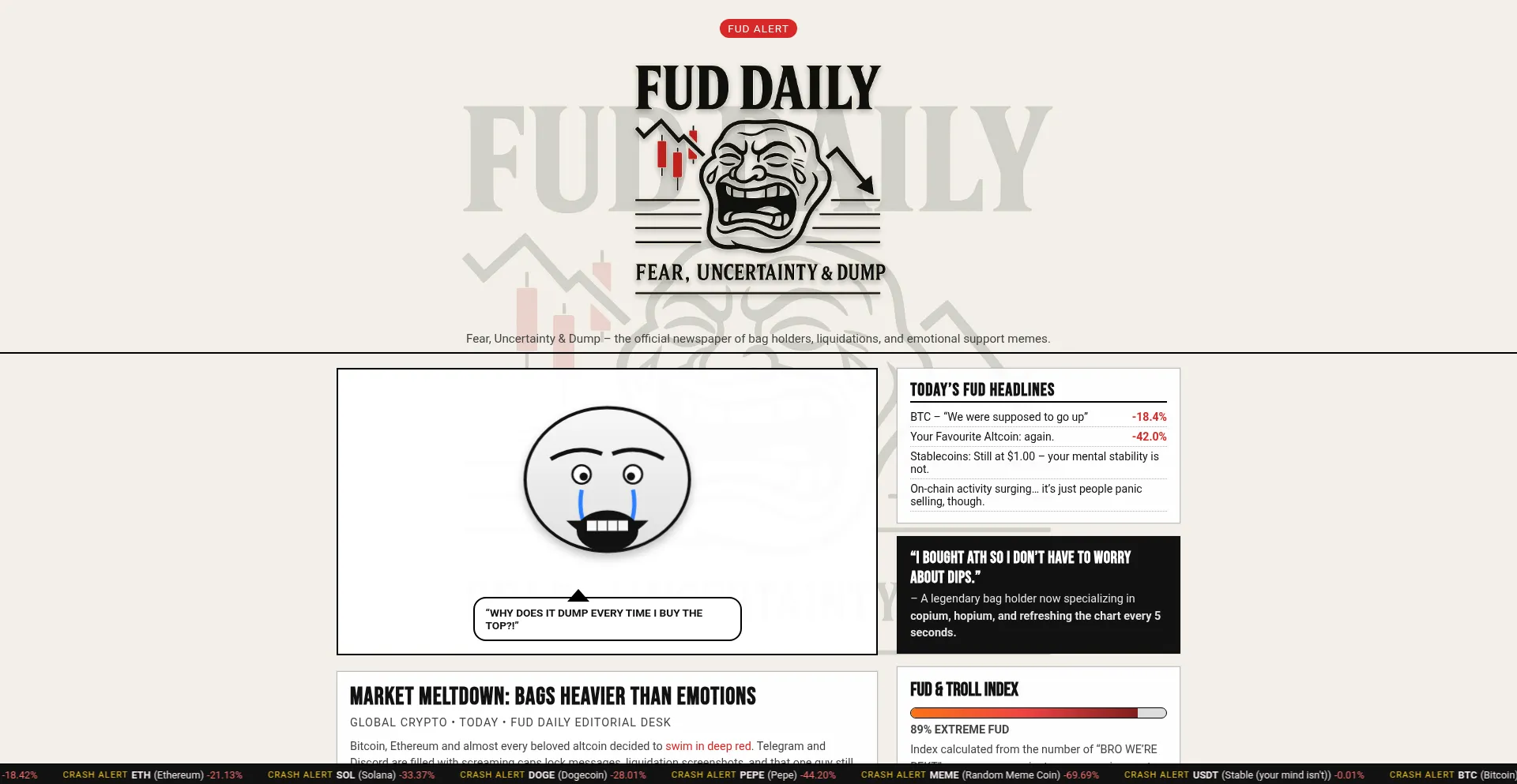 Fear, Uncertainty & Dump – the official newspaper of bag holders, liquidations, and emotional support memes.