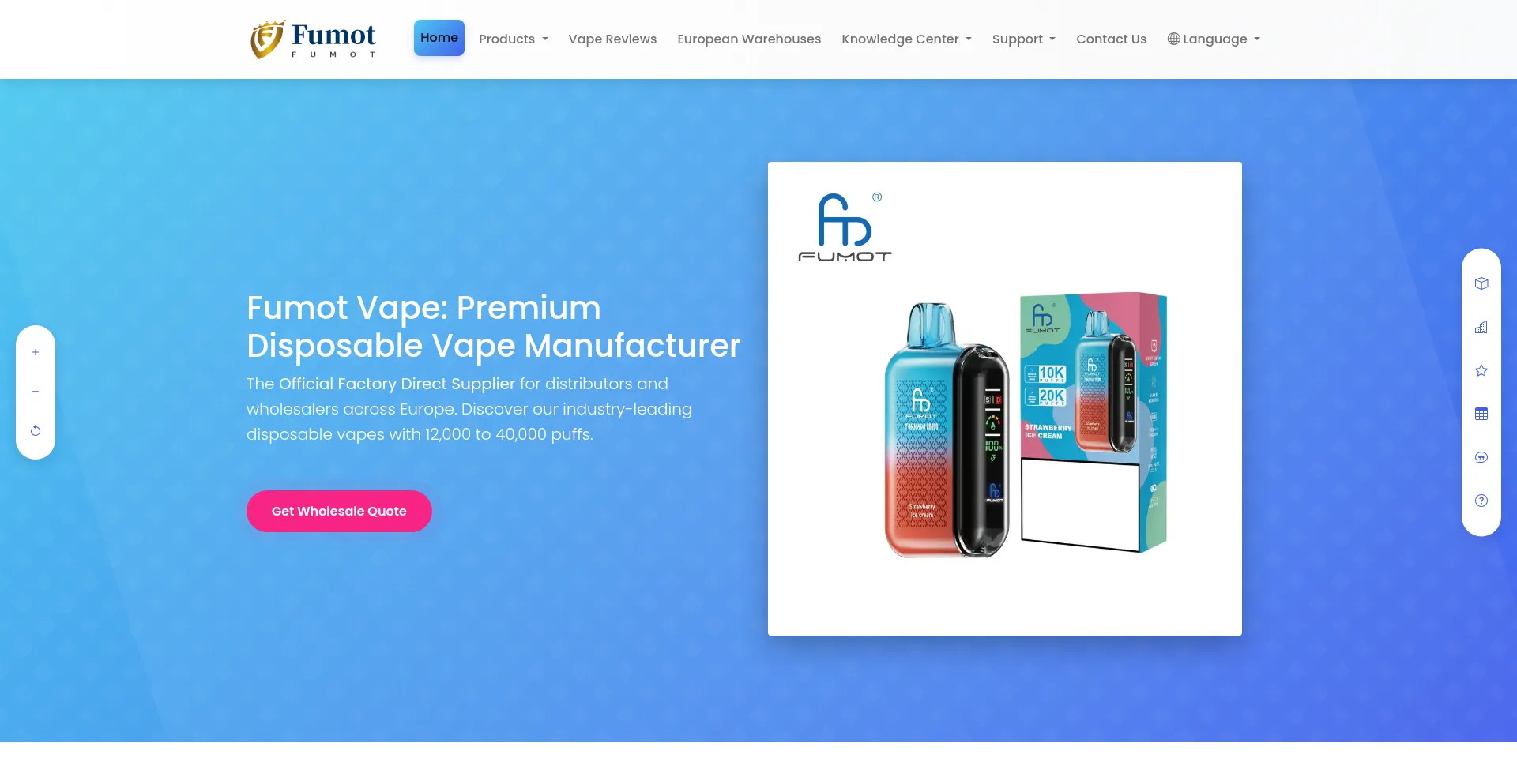 Fumot Vape - Leading manufacturer of premium disposable vapes with 12000-40000 puffs. Official wholesale supplier for distributors in Europe. Factory direct pricing.