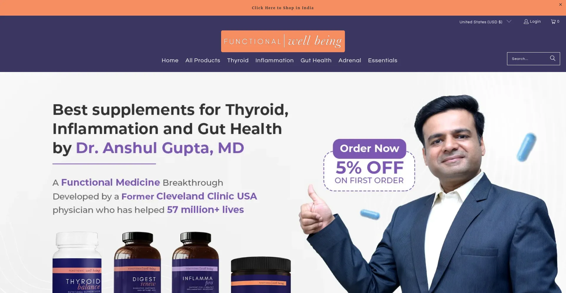 该网站实现数据收集表单,请求个人信息,包括姓名、电子邮件地址、电话号码或其他敏感详细信息。用户应验证 functionalwellbeingshop.com 的合法性并在提交个人数据前查看隐私政策。