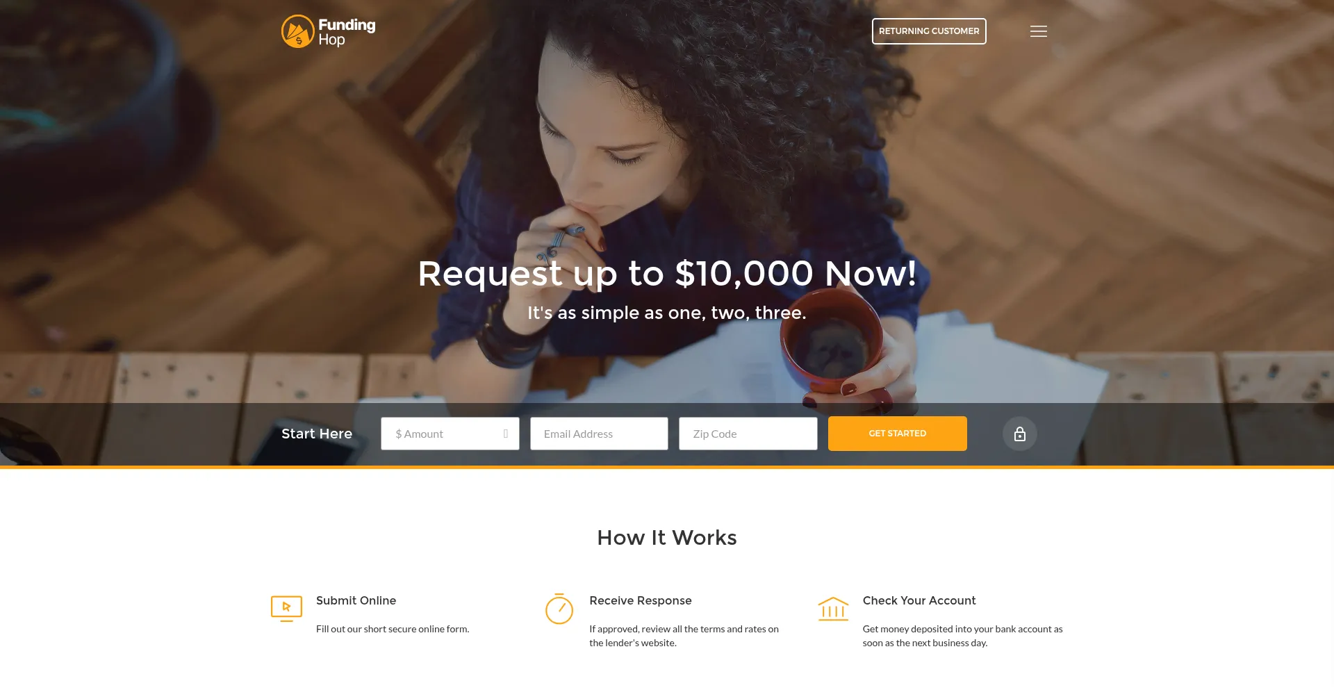 Receive a loan of up to $10,000 with FundingHop as early as then next business day. Request your loan now.