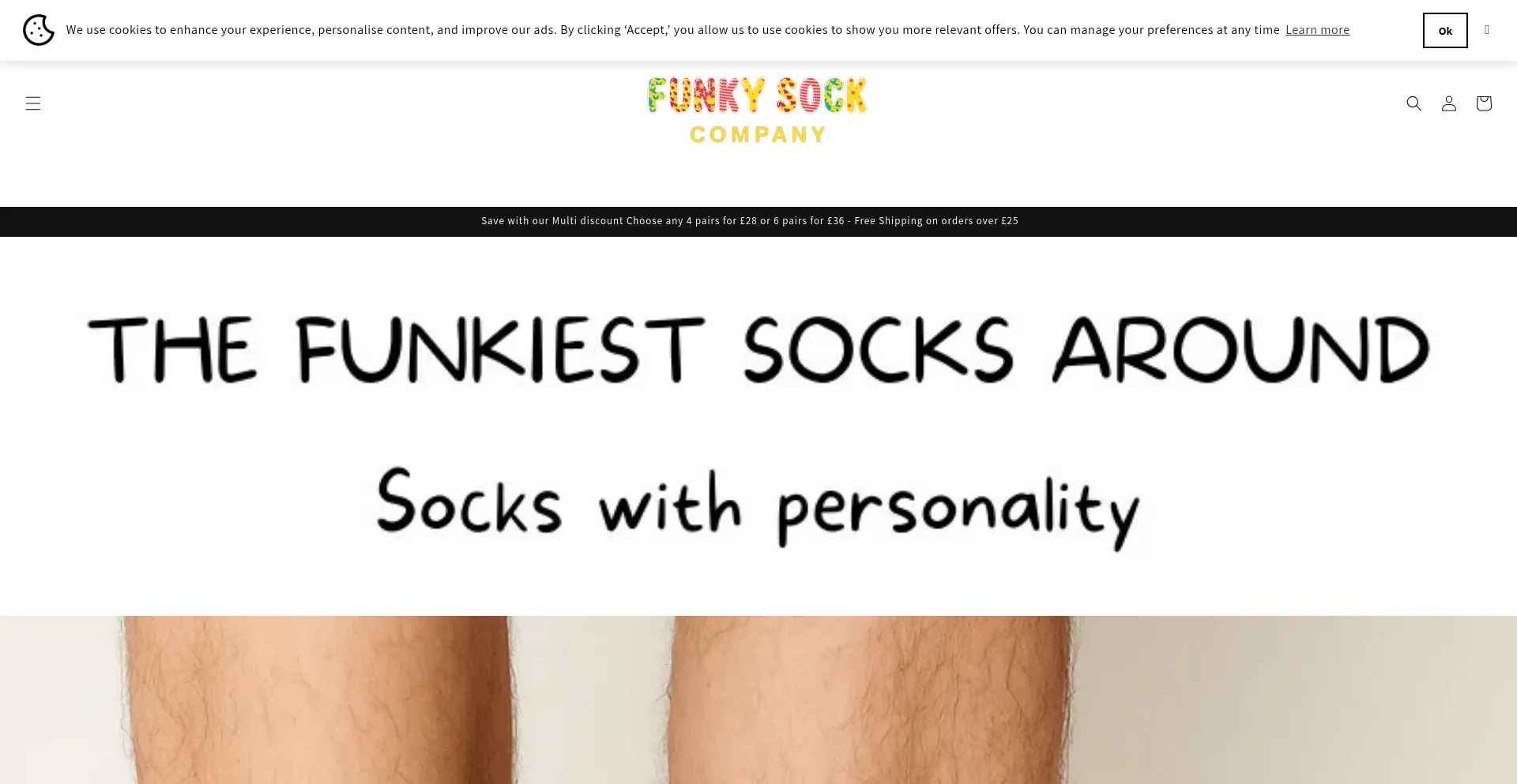 该网站实现符合GDPR或CCPA等隐私法规的cookie同意机制。这表明 funkysockcompany.co.uk 遵守数据保护标准并为用户提供对个人数据收集实践的控制。