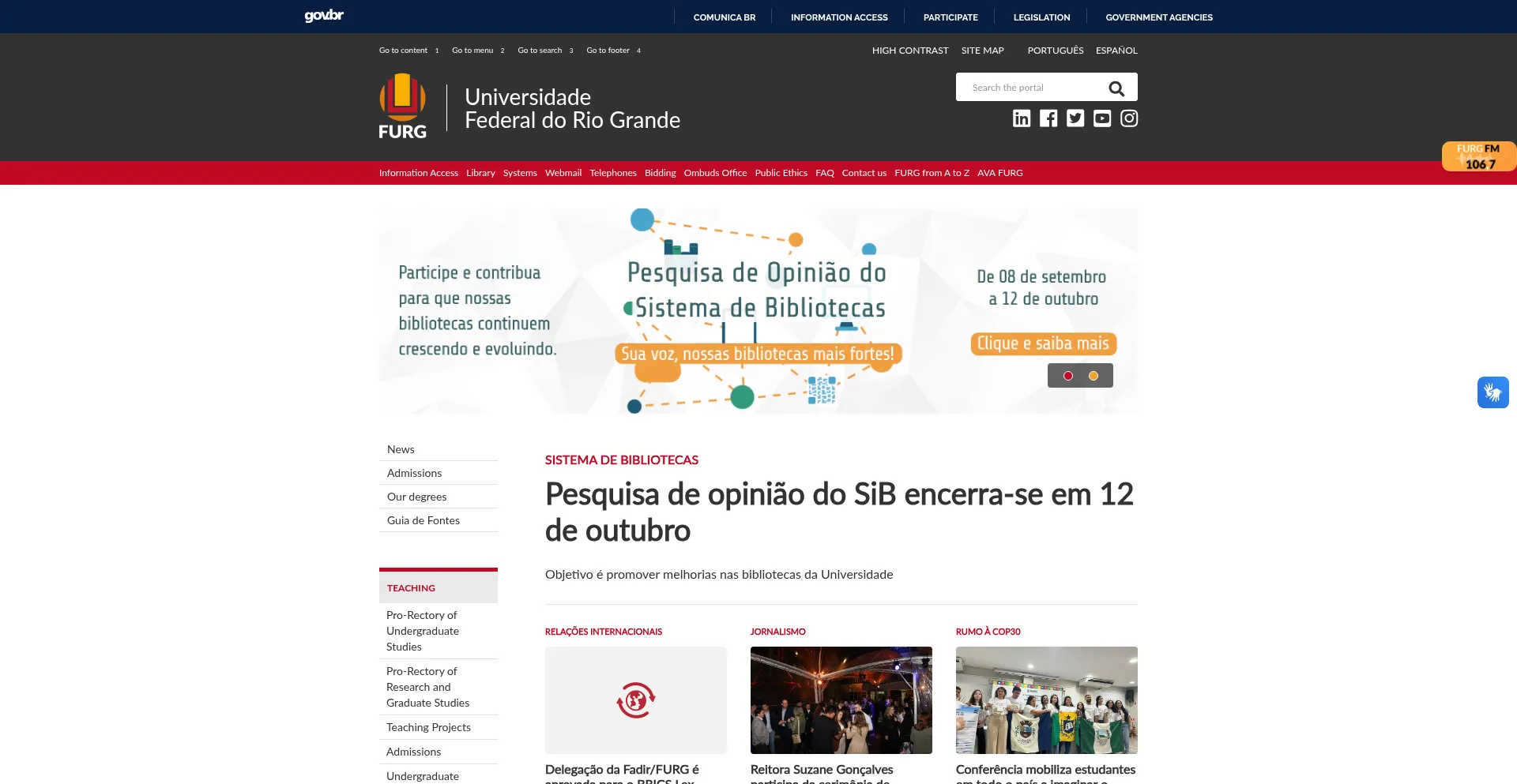 网站上存在社交媒体链接表明 furg.br 在社交媒体上维护官方账户,这是可信度和参与度的积极信号。