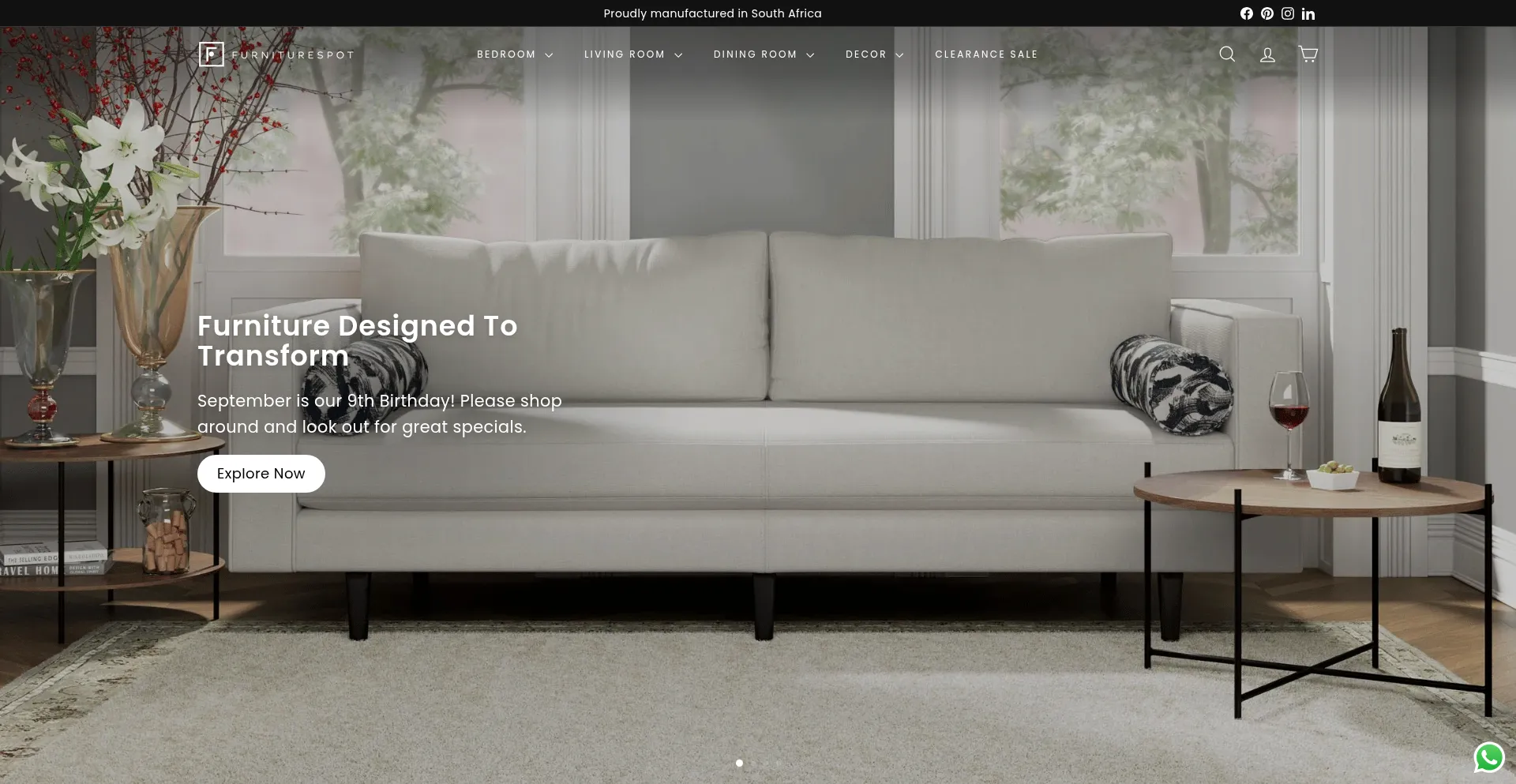 网站上存在社交媒体链接表明 furniturespot.co.za 在社交媒体上维护官方账户,这是可信度和参与度的积极信号。
