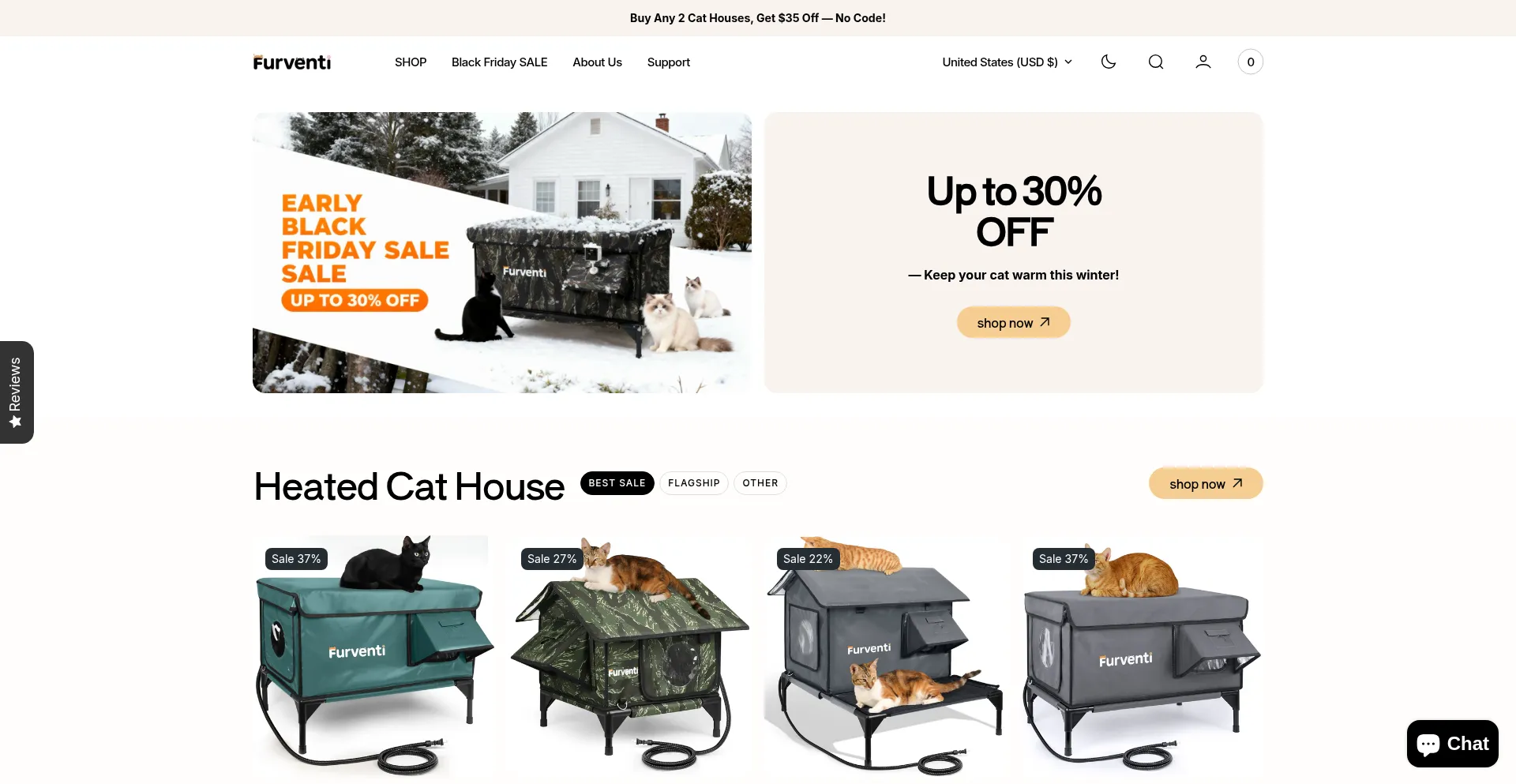 Furventi creates eco-friendly heated cat houses to protect stray cats with warmth, love, and sustainability. Give them shelter.