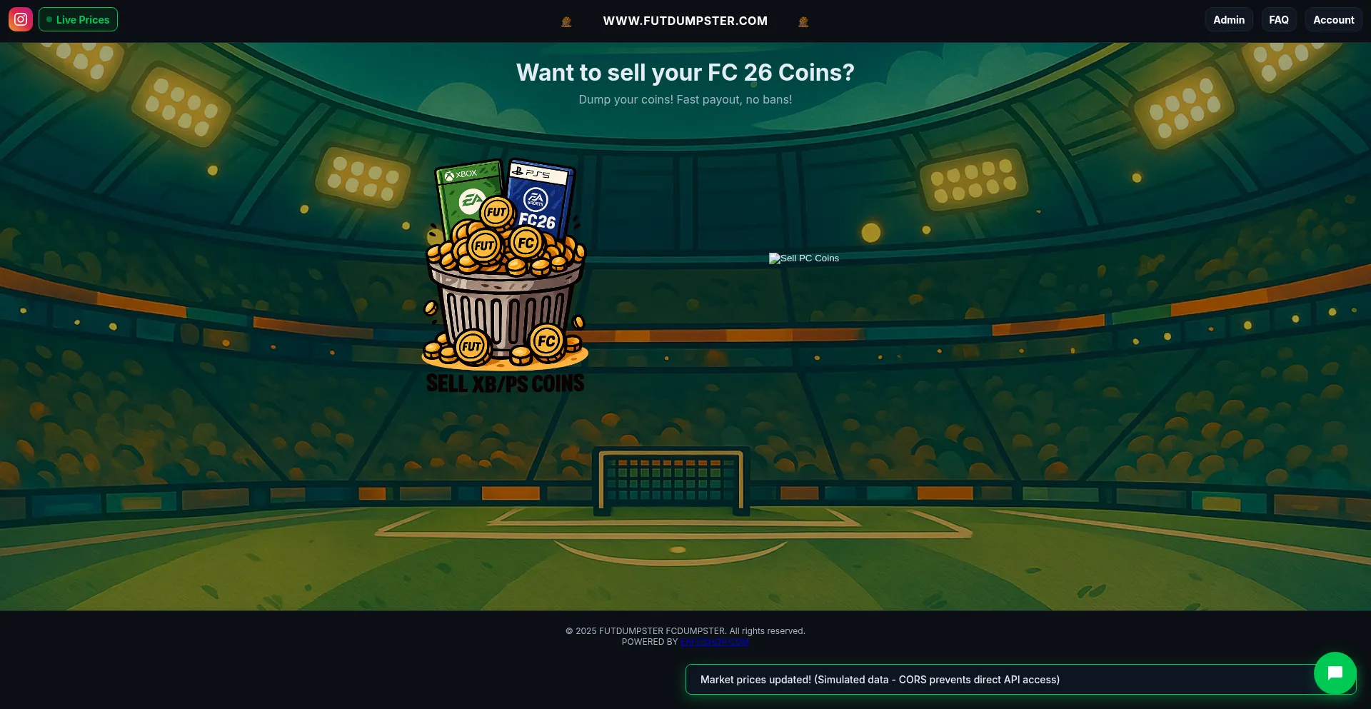Sell EA FC 26 coins instantly for the best prices. Secure transfers, instant payouts, and live market pricing for FC 26 ultimate team coins.