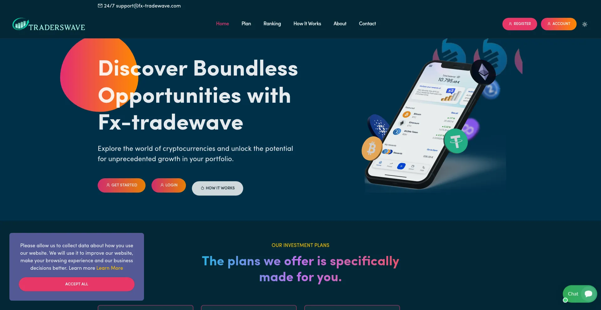 该网站实现数据收集表单,请求个人信息,包括姓名、电子邮件地址、电话号码或其他敏感详细信息。用户应验证 fx-tradewave.com 的合法性并在提交个人数据前查看隐私政策。
