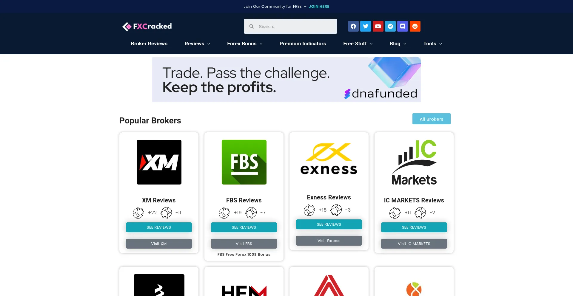 网站上存在社交媒体链接表明 fxcracked.com 在社交媒体上维护官方账户,这是可信度和参与度的积极信号。