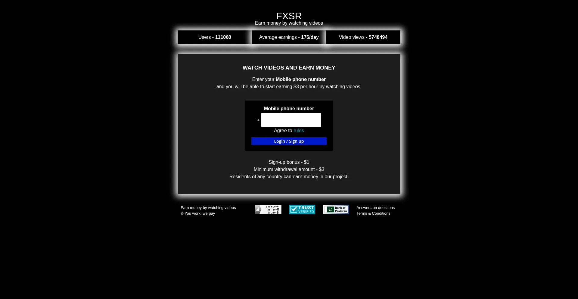 Enter your Mobile phone number and you will be able to start earning $3 per hour by watching videos.