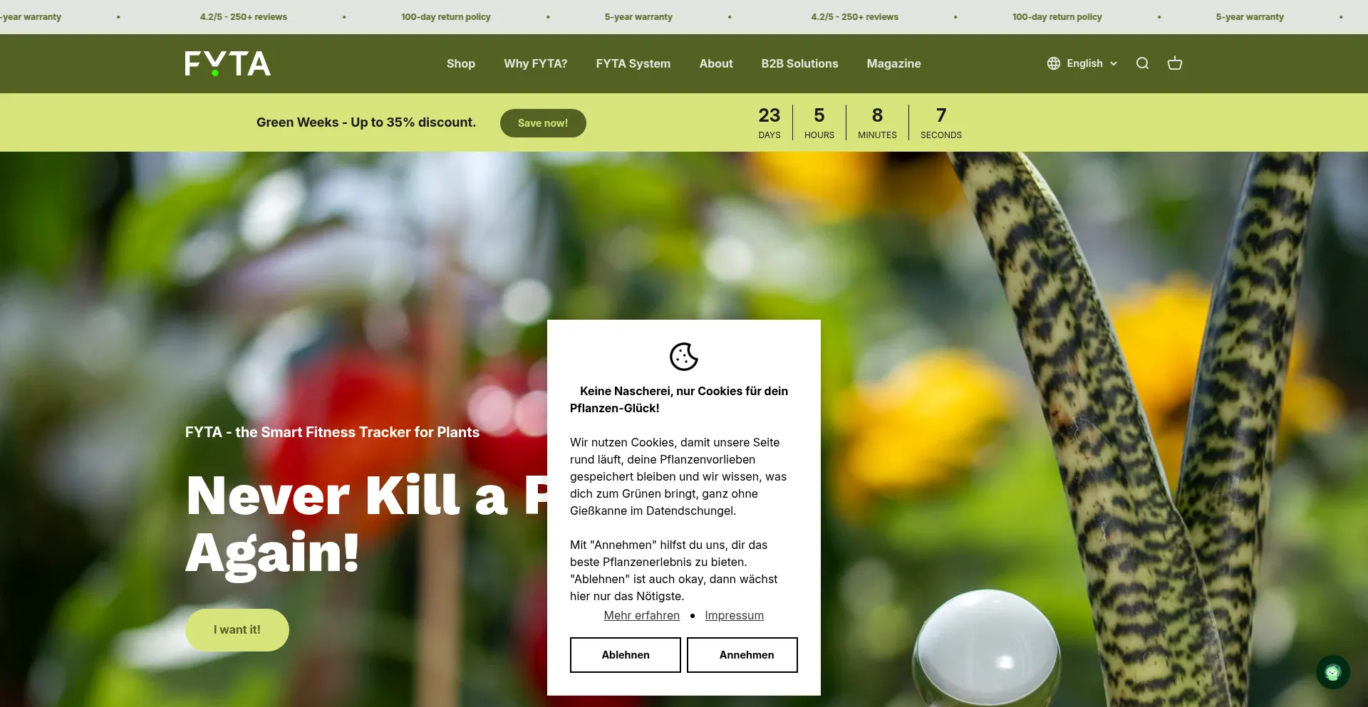 fyta.de 使用 Google Tag Manager 在其网站上添加和更新追踪代码(标签)。