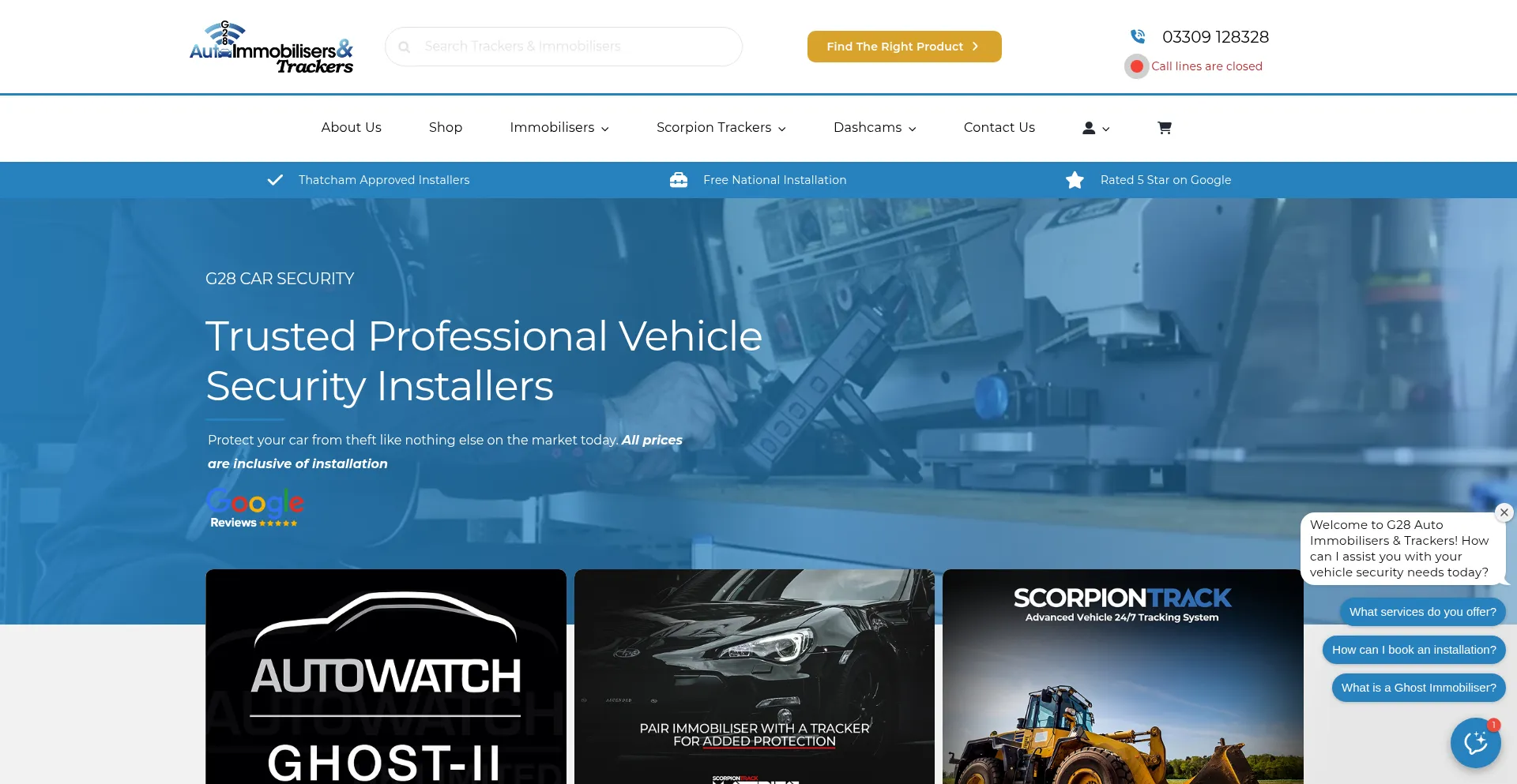 网站 g28auto-immobilisers-trackers.co.uk 使用免费电子商务平台解决方案,这可能表明成本意识运营,但也可能暗示与企业级解决方案相比在安全功能、客户支持或高级功能方面的限制。