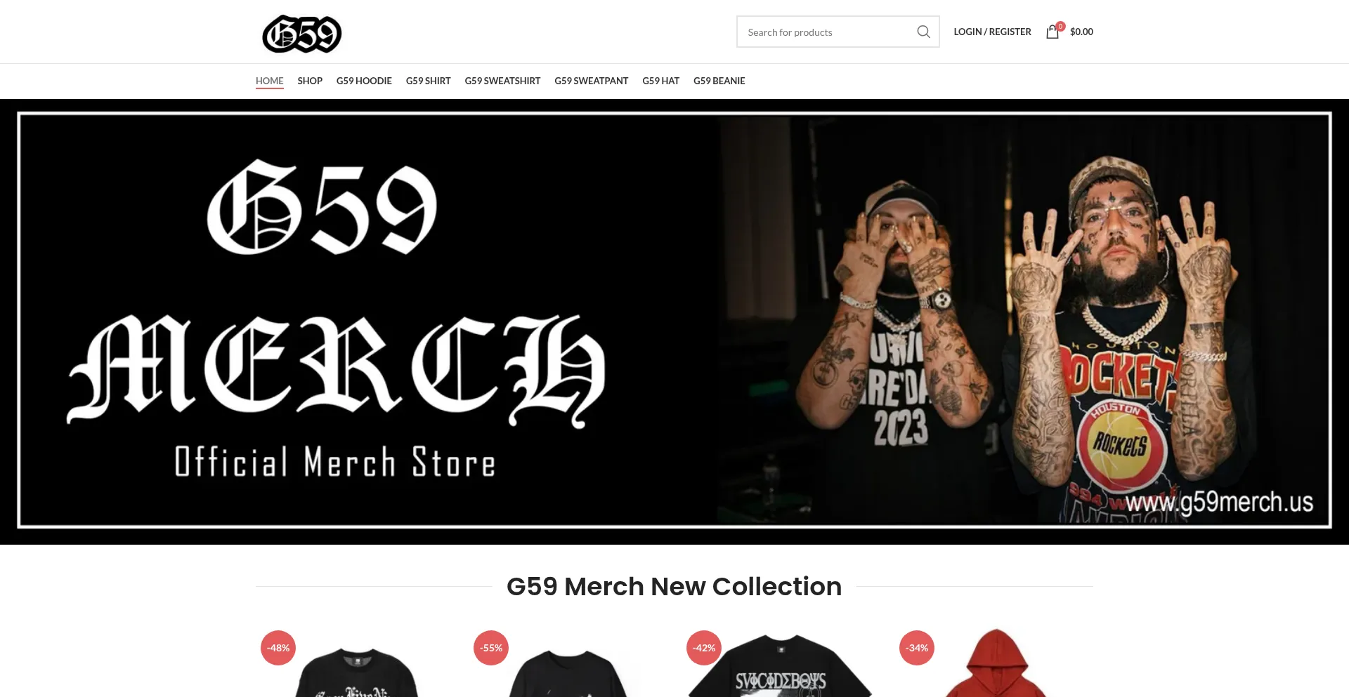 Shop G59 Merch clothing Line collection on official website. Unique apparel and accessories for fans with distinctive styles. Worlwide Fast Shipping