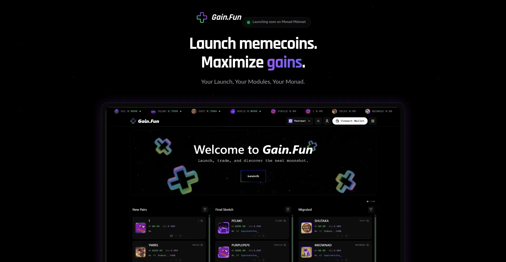 Launch memecoins and maximize gains. Launch, trade and earn together on Monad Mainnet.