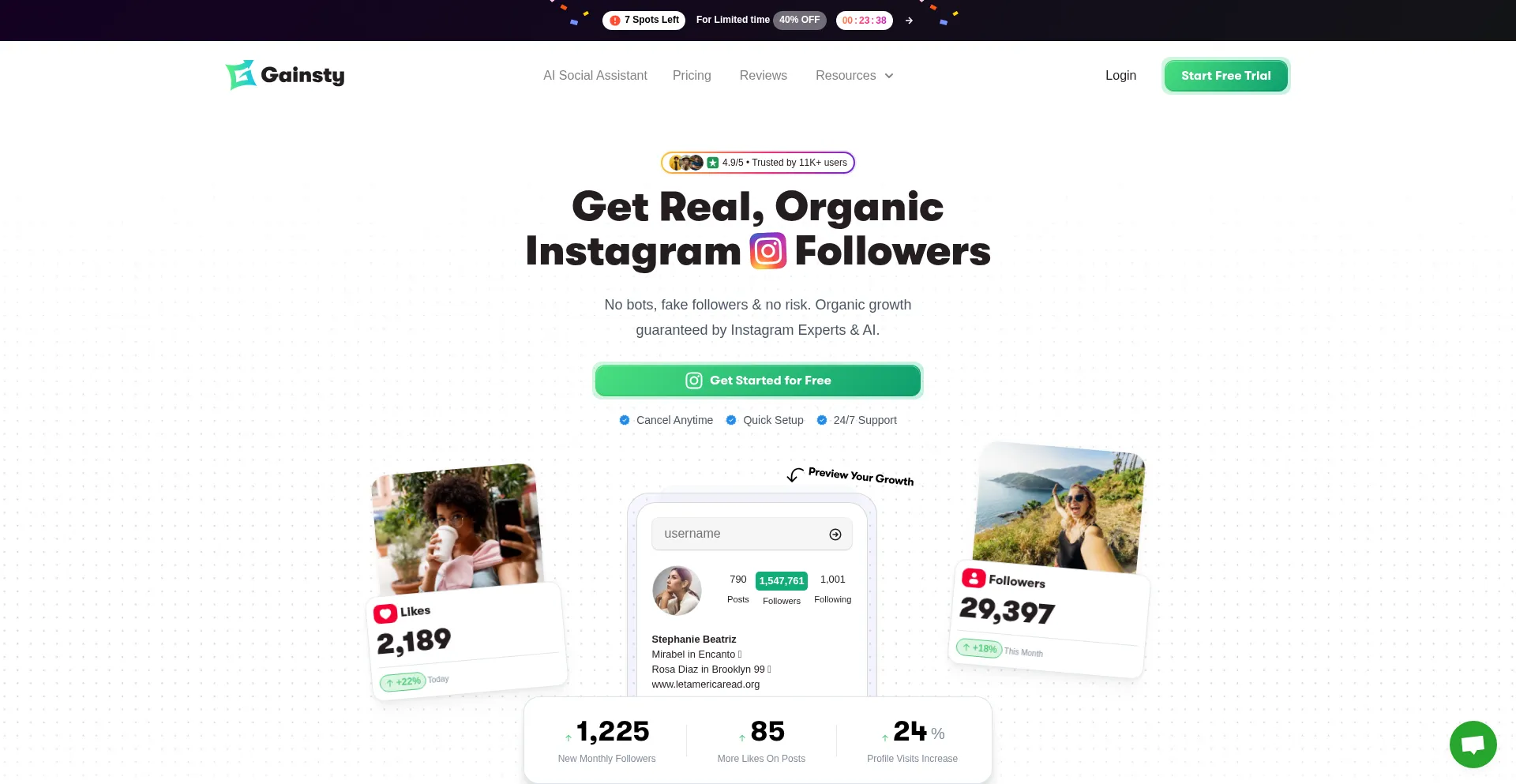 Join 11,000+ Instagram users who use Gainsty to grow their Instagram followers and engagement organically.