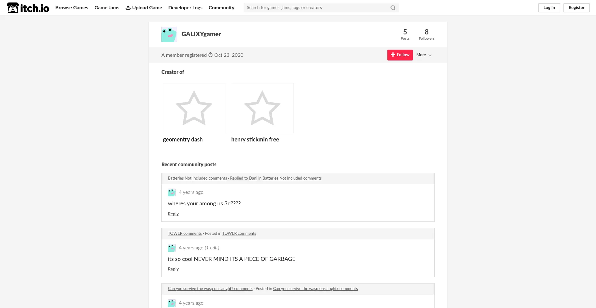 网站上存在社交媒体链接表明 galixygamer.itch.io 在社交媒体上维护官方账户,这是可信度和参与度的积极信号。