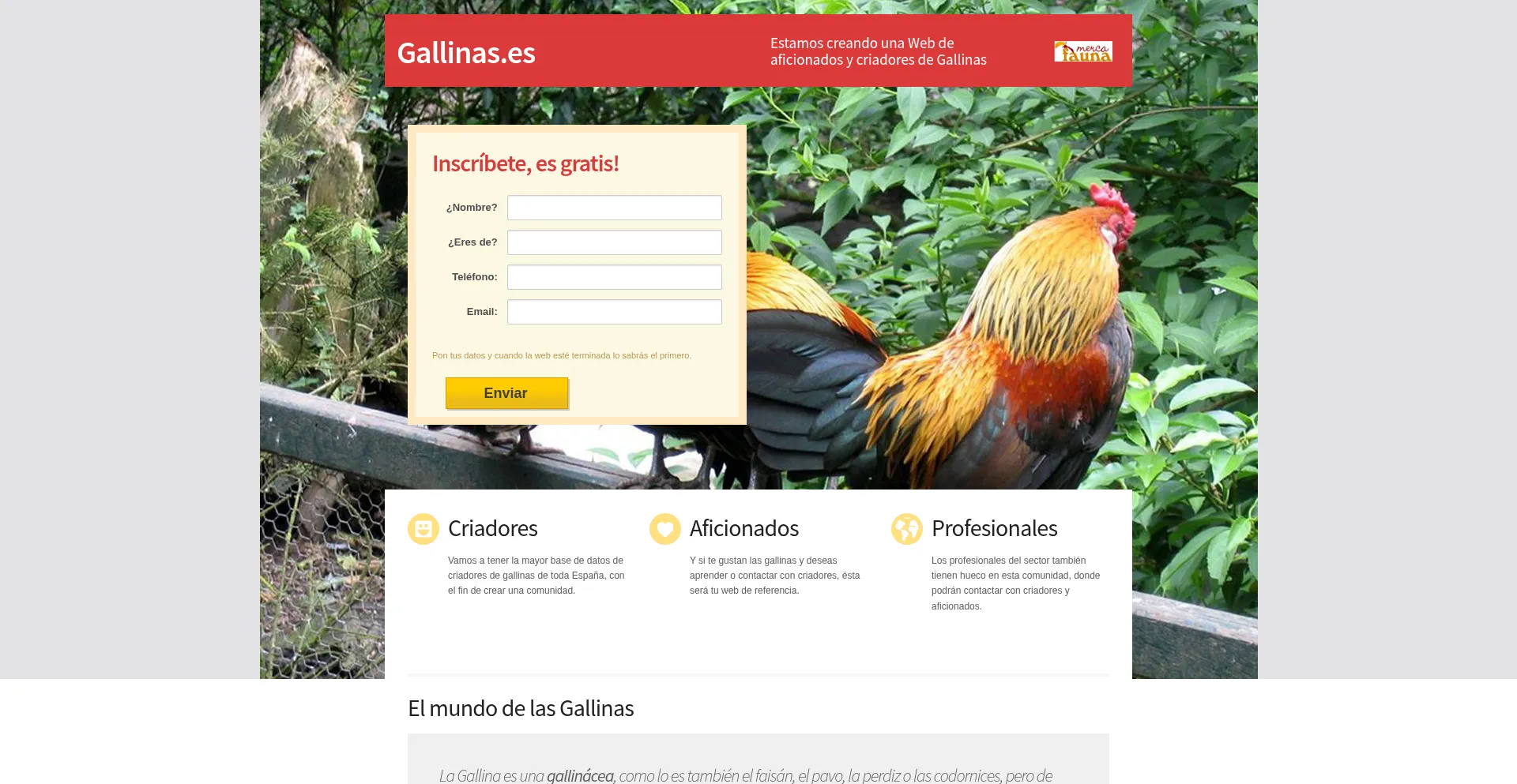 Gallinas.es es una pagina dedicada a las gallinas. Aqui tenemos información básica sobre gallinas, y puedes comprar tus gallinas por Internet