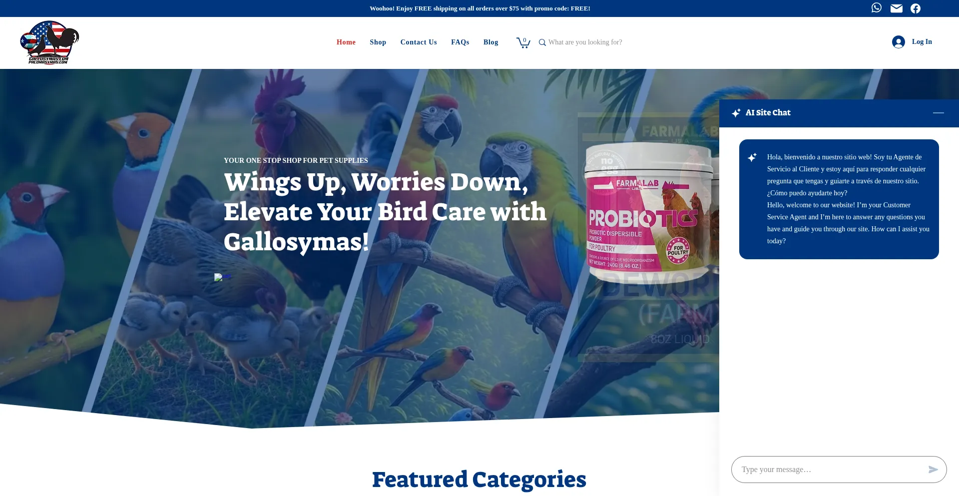 Birds Supplies shipping all around the world. Medicinas Suplementos Vitaminas Palomas Aves Envios a todo el mundo. Gallosymas.com