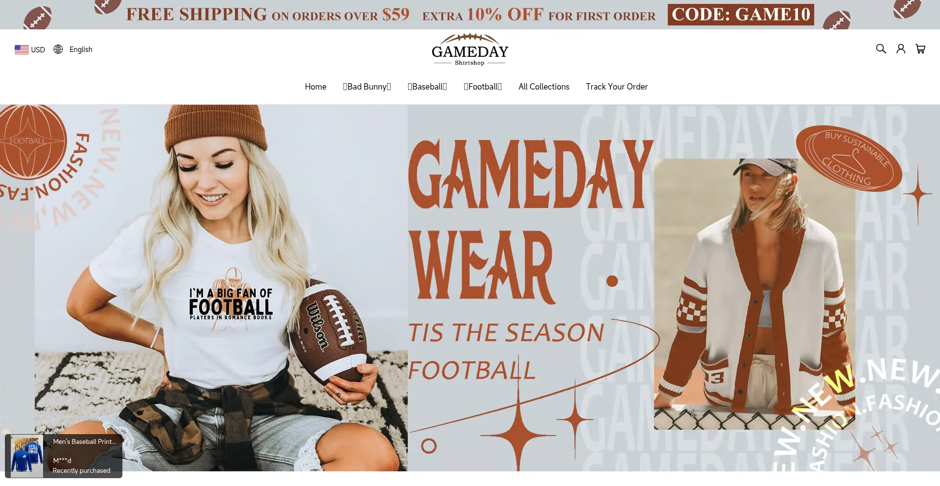 分析表明 gamedayshirtshop.com 作为电子商务平台运营,促进商品或服务的在线交易。该网站实现了购物车功能、支付处理系统和产品目录功能,这些是商业零售运营的典型特征。