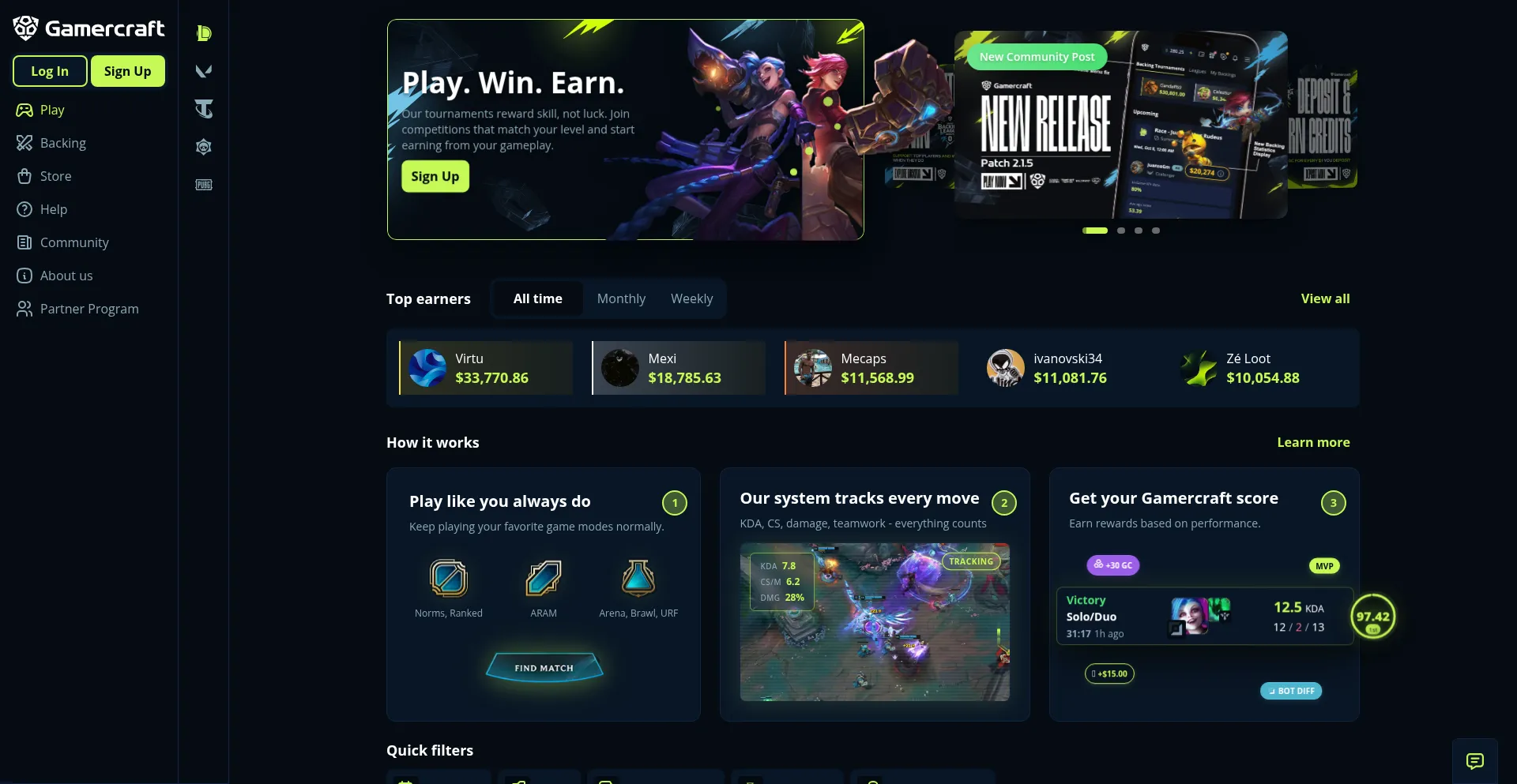 Play your favorite games while we track every move. Get your Gamercraft Score based on performance. Higher scores = bigger rewards. Join skill-matched tournaments daily.