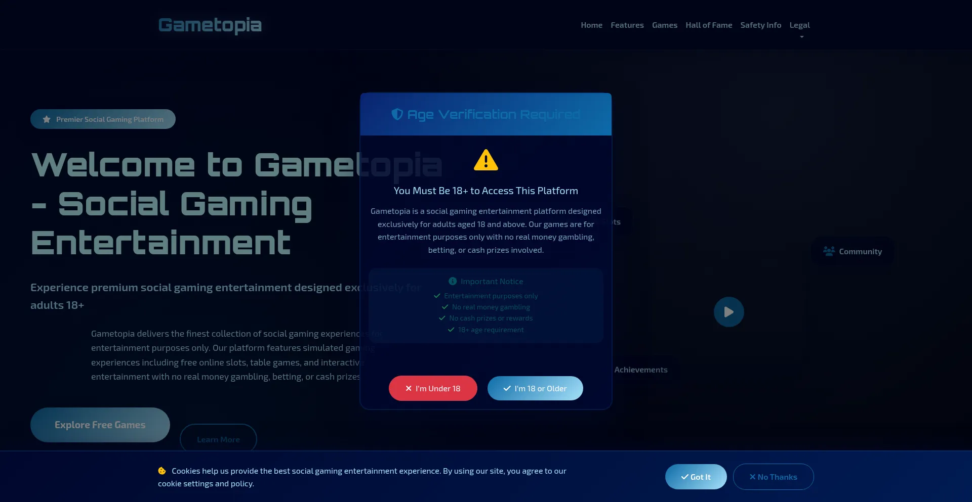 Discover Gametopia, the premier social gaming entertainment platform. Enjoy free online games, slots, and table games for entertainment purposes only. 18+ only, no real money ga...