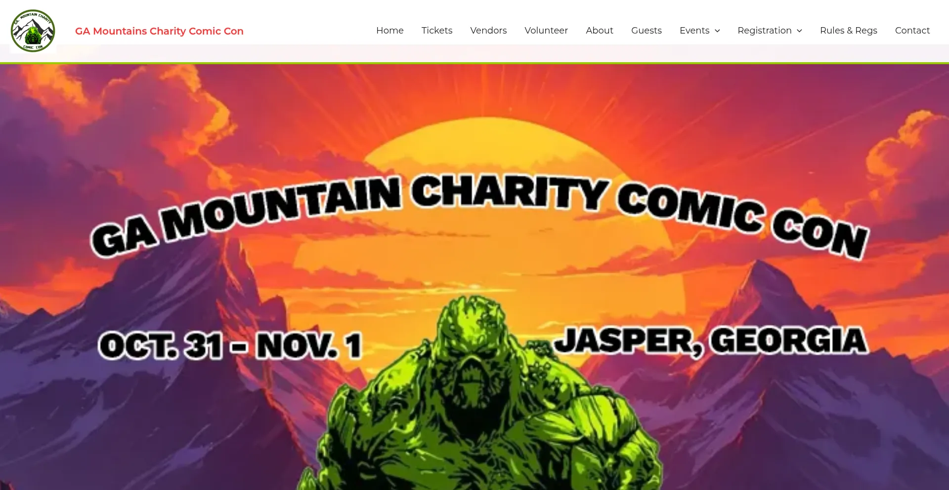 该网站实现数据收集表单,请求个人信息,包括姓名、电子邮件地址、电话号码或其他敏感详细信息。用户应验证 gamountaincharitycomiccon.com 的合法性并在提交个人数据前查看隐私政策。