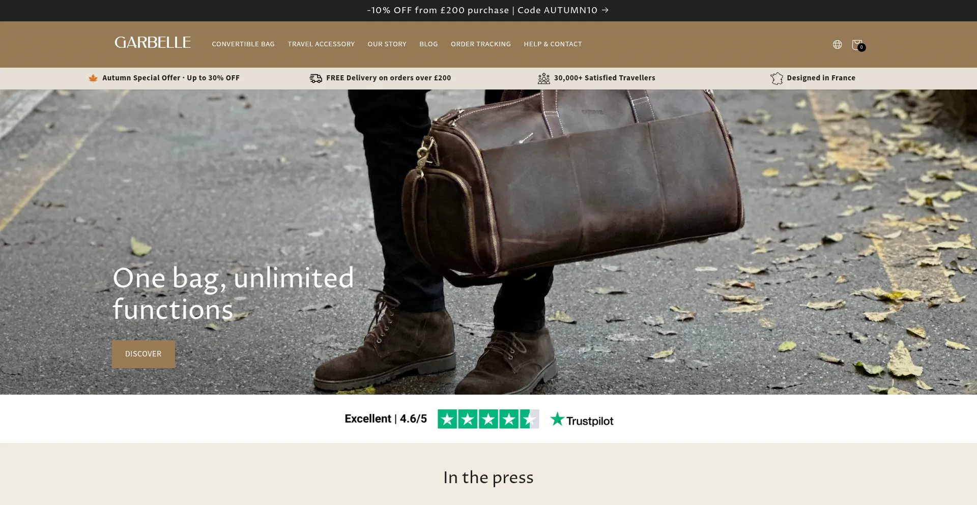 Welcome at Garbelle, a brand of leather travel bags for businessmen with an integrated cover to store suits without wrinkling them!