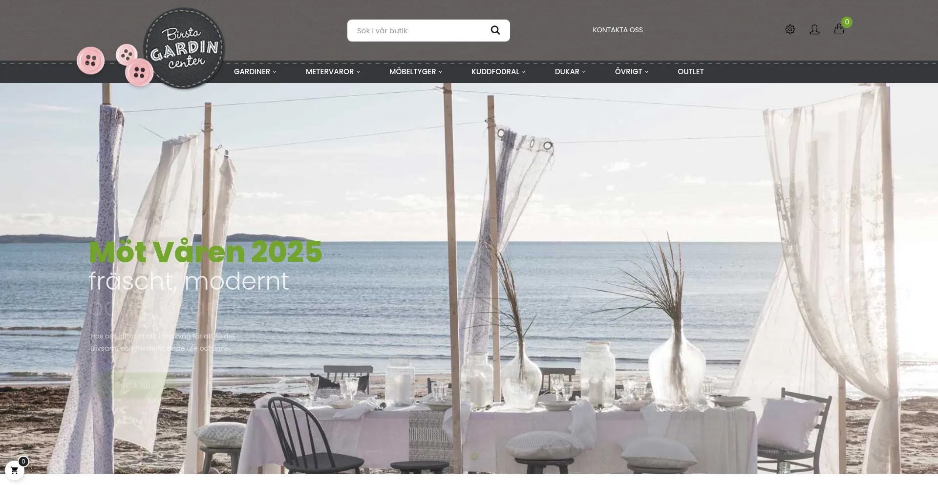 Färdigsydda Gardiner, Tyg på Metervara, Kuddfodral, Gardin och Sytillbehör. En textil e-butik Online med fysisk butik i Birsta Köpcentrum.