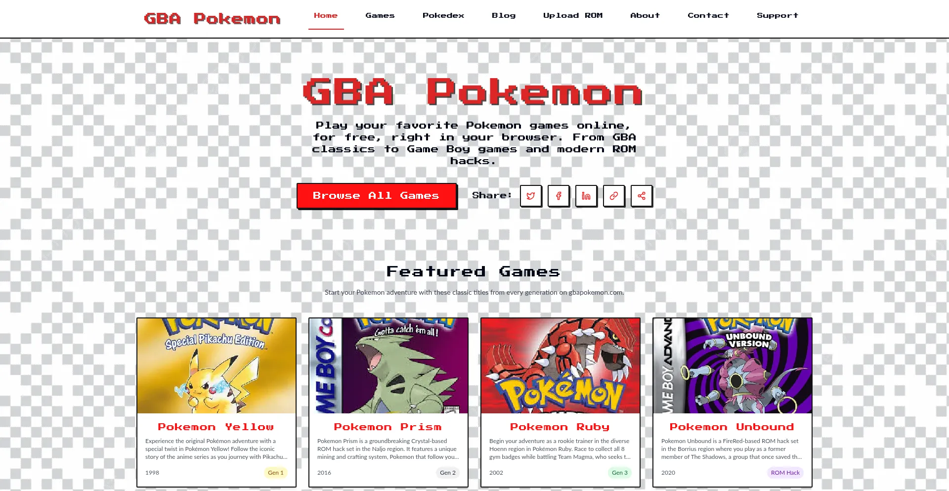 Play your favorite Pokemon GBA games online for free. Enjoy Pokemon Ruby, Sapphire, Emerald, FireRed and LeafGreen directly in your browser with no downloads required.