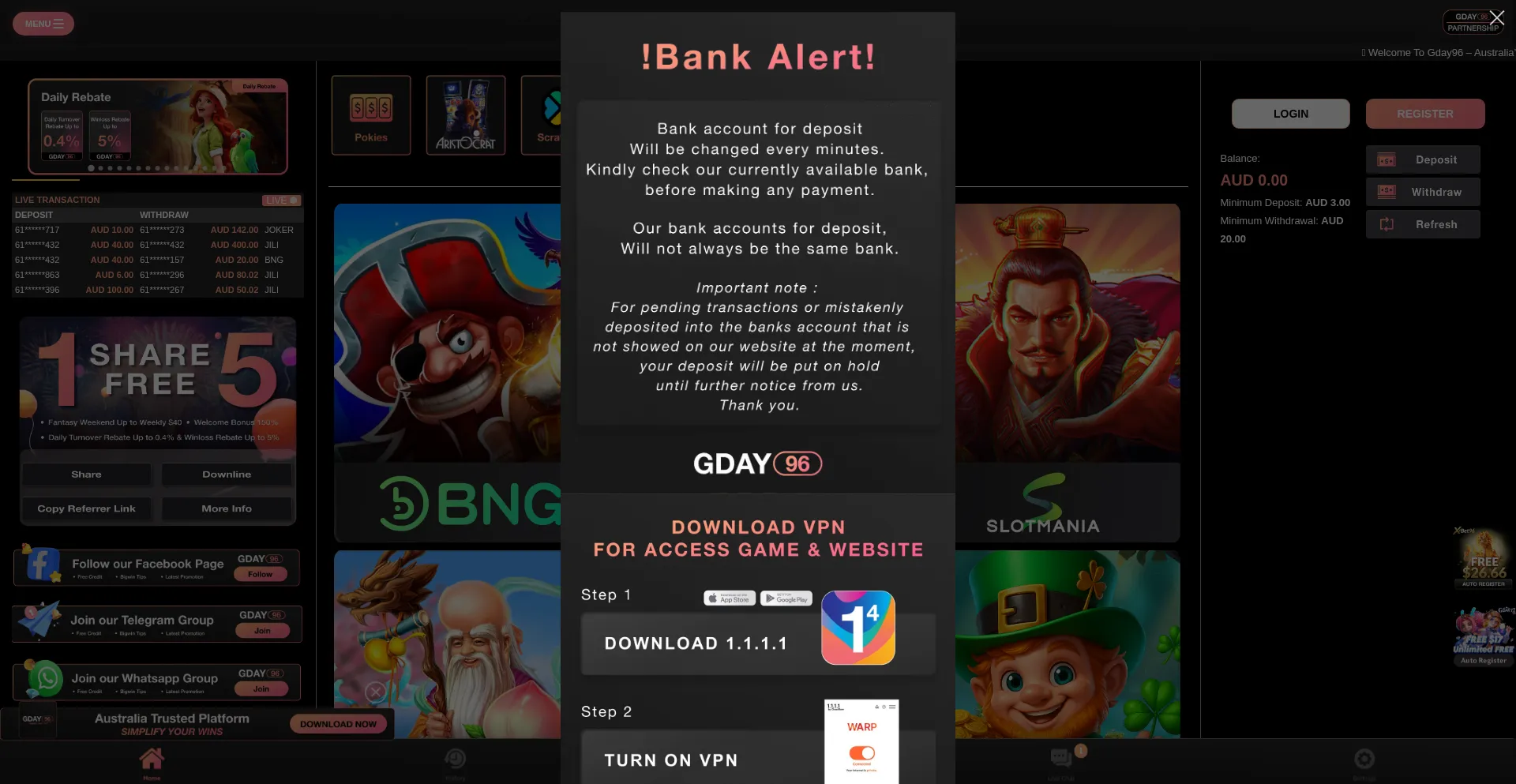 Gday96.com 运营以低可信度和不可信操作做法为特征的在线赌博平台,可能损害玩家安全和财务利益。