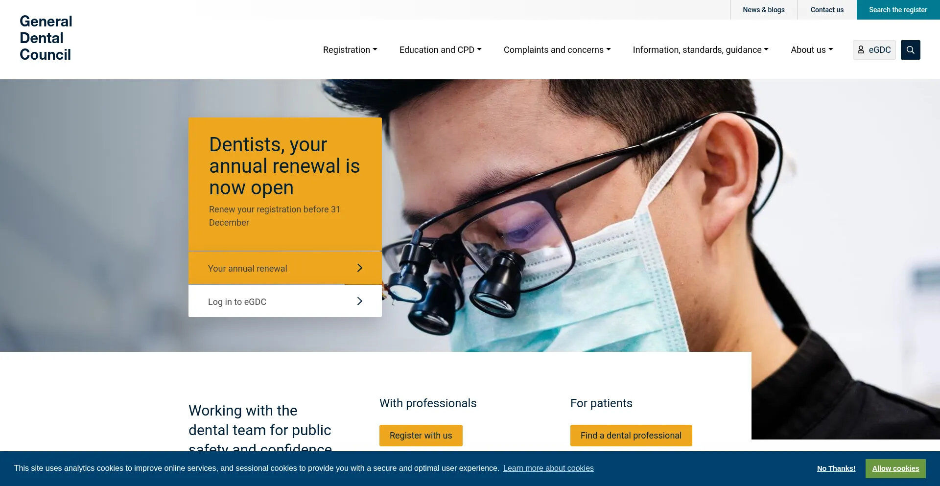 该网站实现数据收集表单,请求个人信息,包括姓名、电子邮件地址、电话号码或其他敏感详细信息。用户应验证 gdc-uk.org 的合法性并在提交个人数据前查看隐私政策。