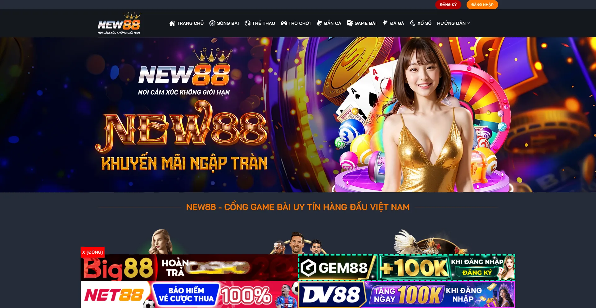 Nhà cái NEW88 cổng game bài trực tuyến uy tín hàng đầu tại Việt Nam. Tham gia đăng ký trải nghiệm tại NEW88 nhận KM thành viên mới 1.888k.