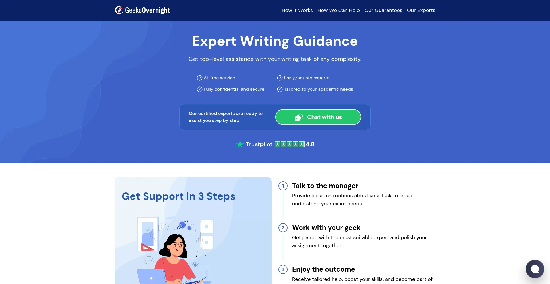 Count on expert support with your task 24/7. Our certified experts are ready to assist you step by step!