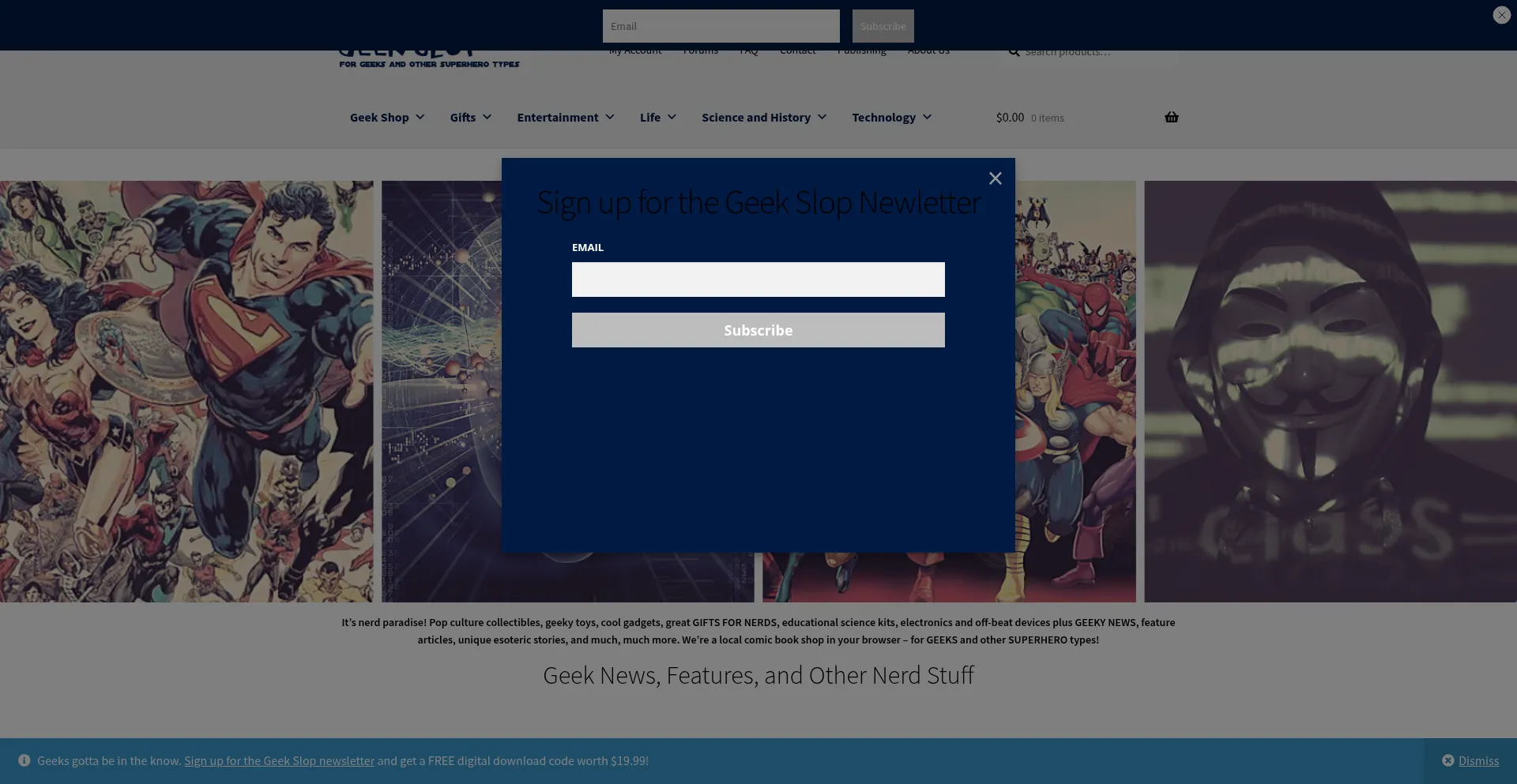 Geek Slop - Cool Stuff For Nerds. Action Figures, Superhero Toys, Comic Books, Science Toys, Cool Gadgets, Geek Gear, Hard-to-find Pop Culture Collectibles, Rare Entertainment Memorabilia, Cool Things, And More. - Geek Slop Shop