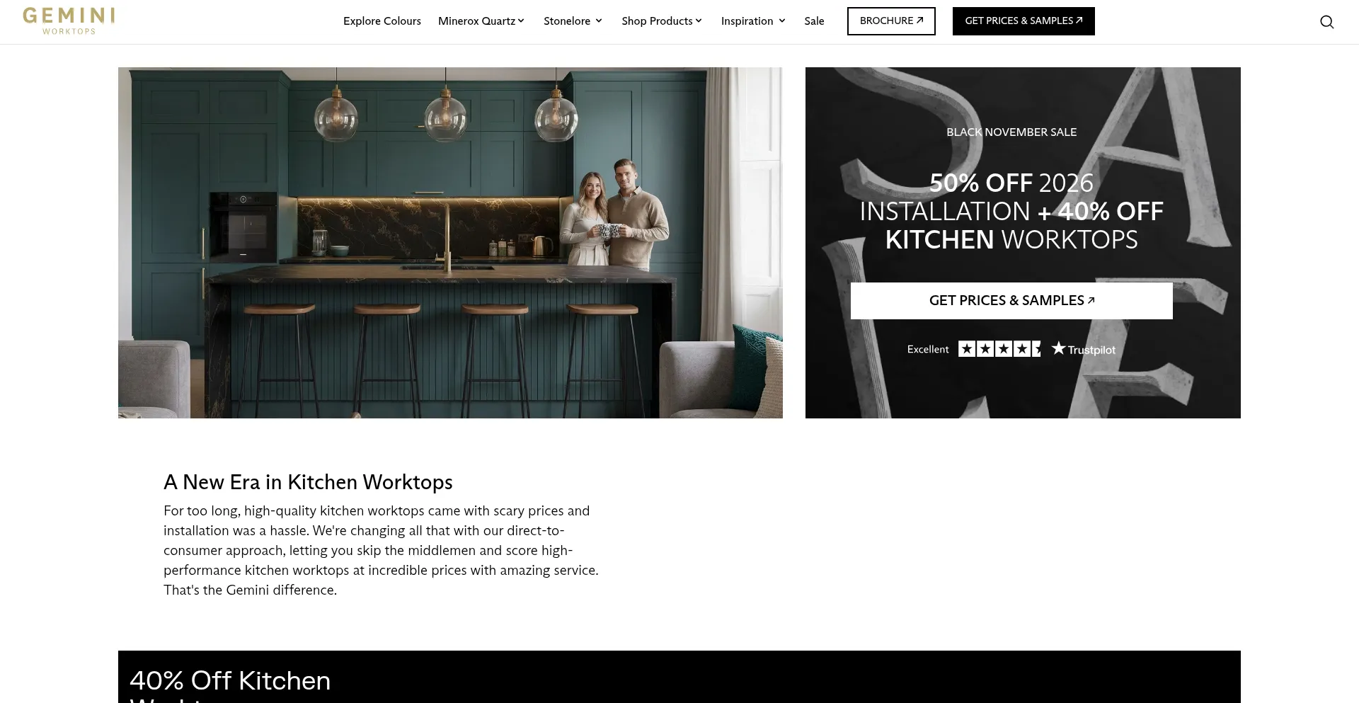 Shop our large range of kitchen worktops. Save by buying direct from Gemini Worktops. UK-wide installation service. 25 year material warranty.