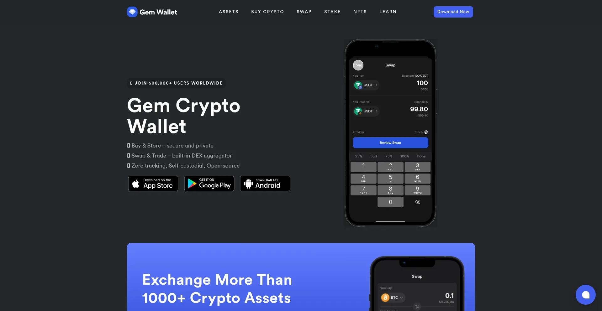 Gem Wallet - open-source, self-custody crypto wallet for iOS and Android. Buy, store, and swap Bitcoin, Tether, Solana, Ethereum, XRP, NFTs, and more.