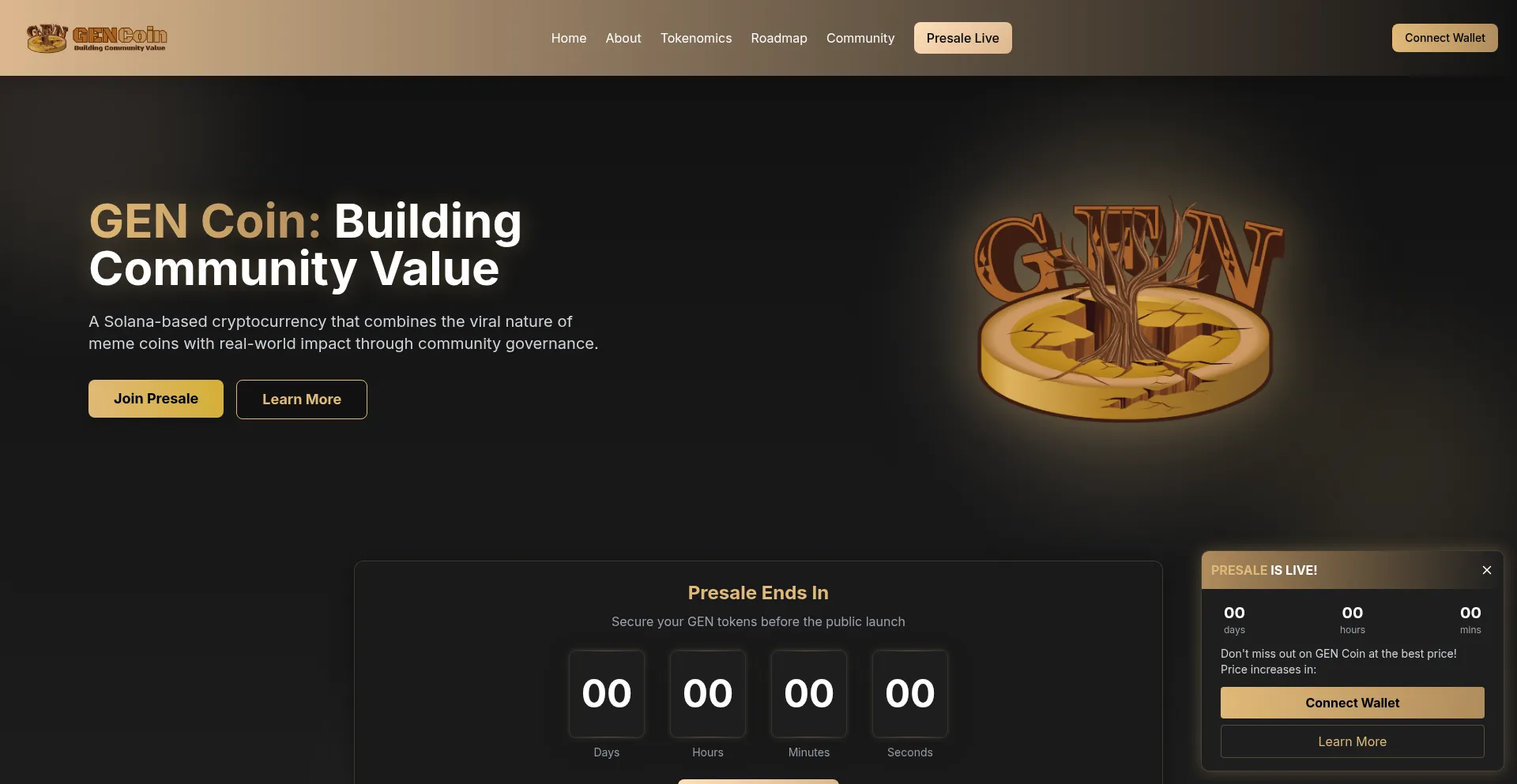 GEN Coin is a Solana-based meme coin with a social mission - funding community projects with meme coin virality.