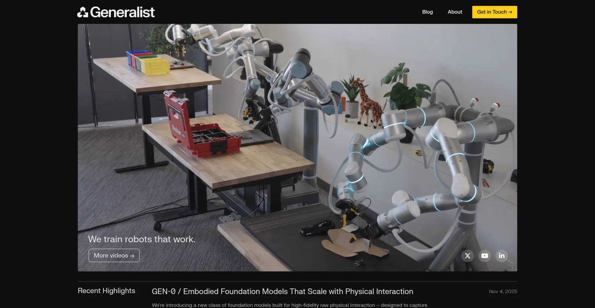 网站上存在社交媒体链接表明 generalistai.com 在社交媒体上维护官方账户,这是可信度和参与度的积极信号。