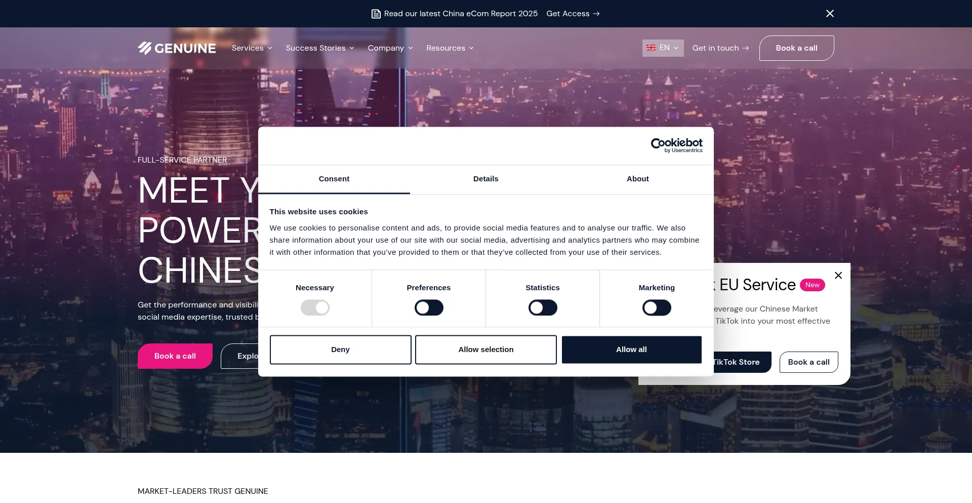 该网站实现符合GDPR或CCPA等隐私法规的cookie同意机制。这表明 genuine-asia.com 遵守数据保护标准并为用户提供对个人数据收集实践的控制。