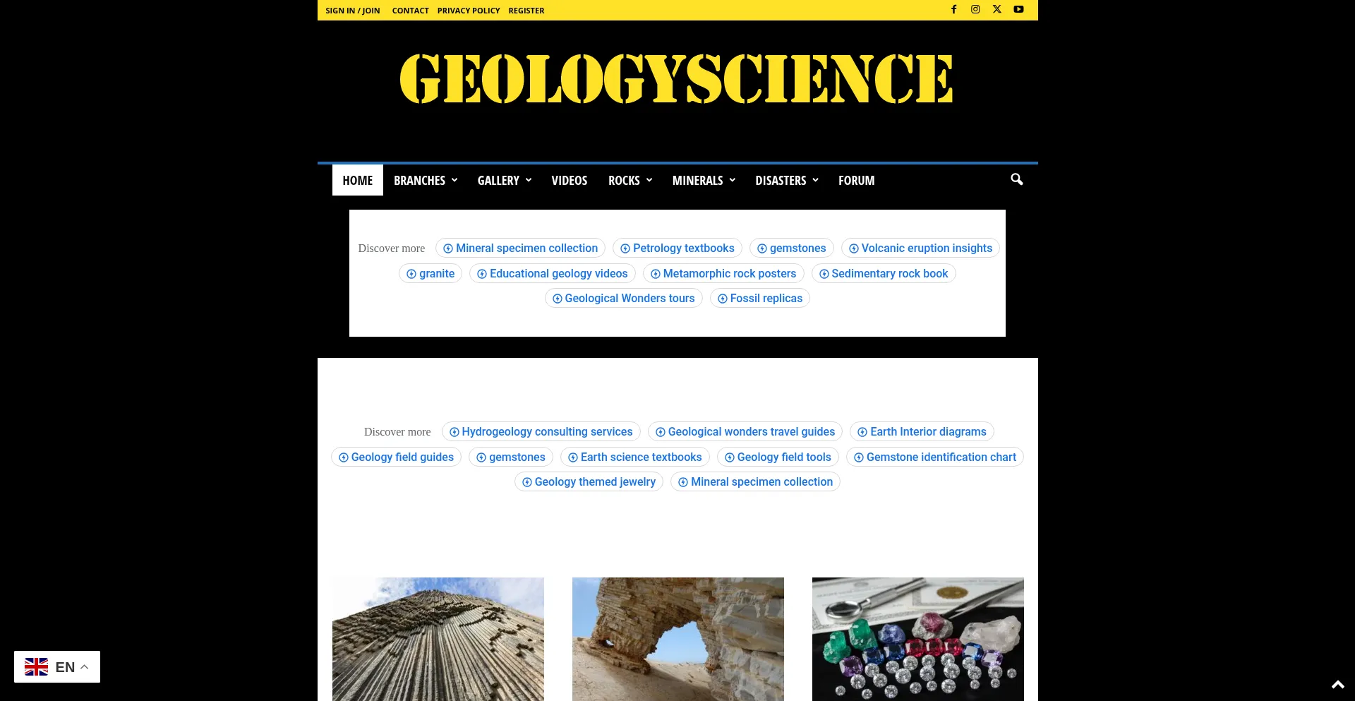 网站上存在社交媒体链接表明 geologyscience.com 在社交媒体上维护官方账户,这是可信度和参与度的积极信号。