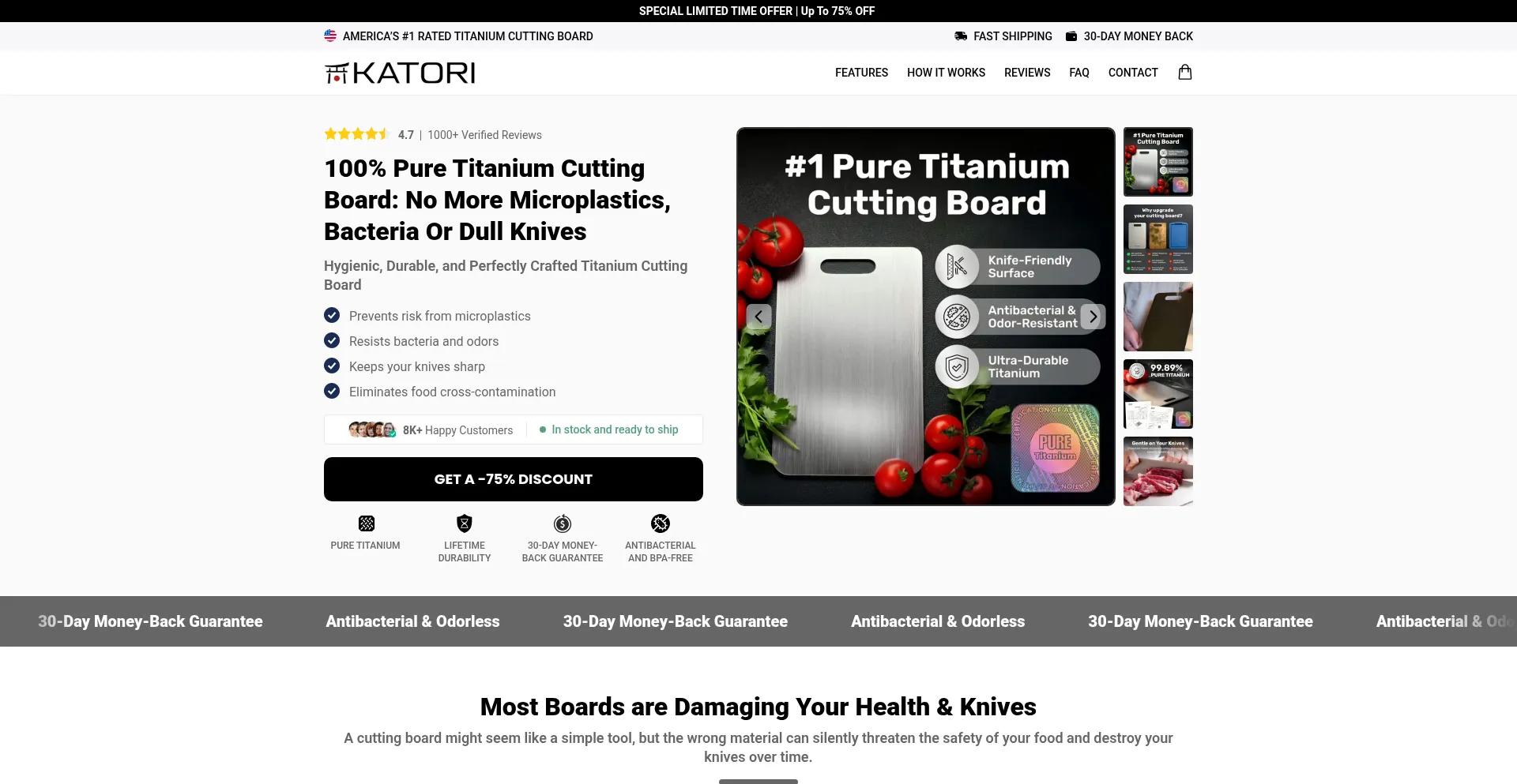 Upgrade your kitchen with the Katori Pure Titanium Cutting Board — hygienic, odor-free, and BPA-free. Built to last a lifetime. Double-sided design helps prevent cross-contami...