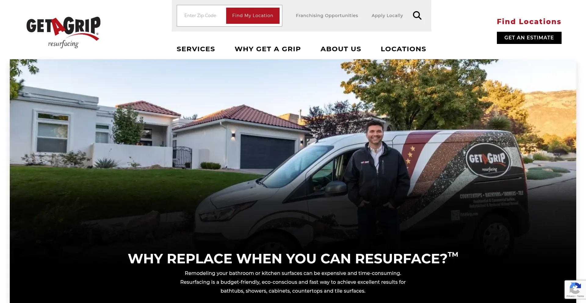 Get A Grip Resurfacing delivers countertop, bathtub, shower, tile, or cabinet resurfacing, refinishing, reglazing or repair all across the United States.