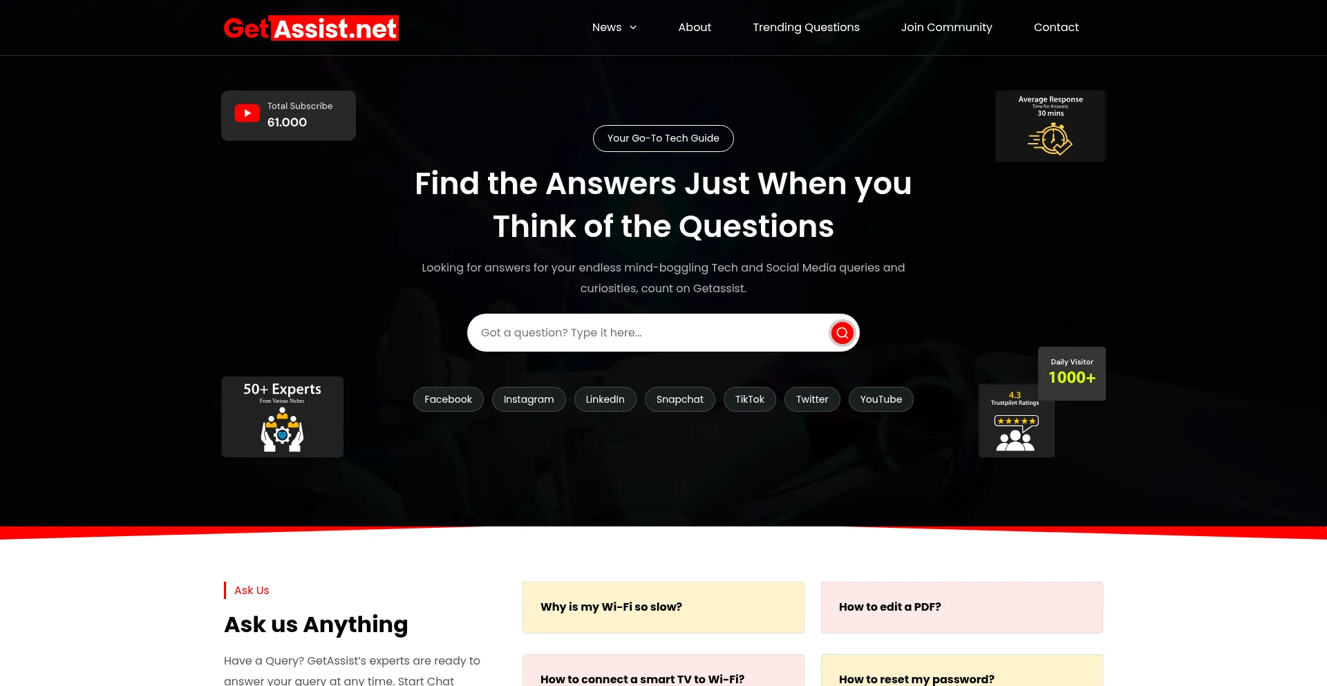 网站上存在社交媒体链接表明 getassist.net 在社交媒体上维护官方账户,这是可信度和参与度的积极信号。
