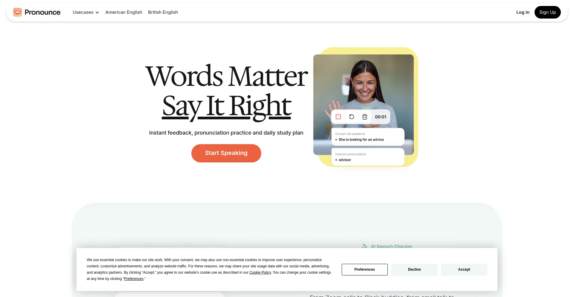 Professionals trust Pronounce’s free speech checker to improve their pronunciation. Speak English clearly and effectively. Simply begin by recording your voice.