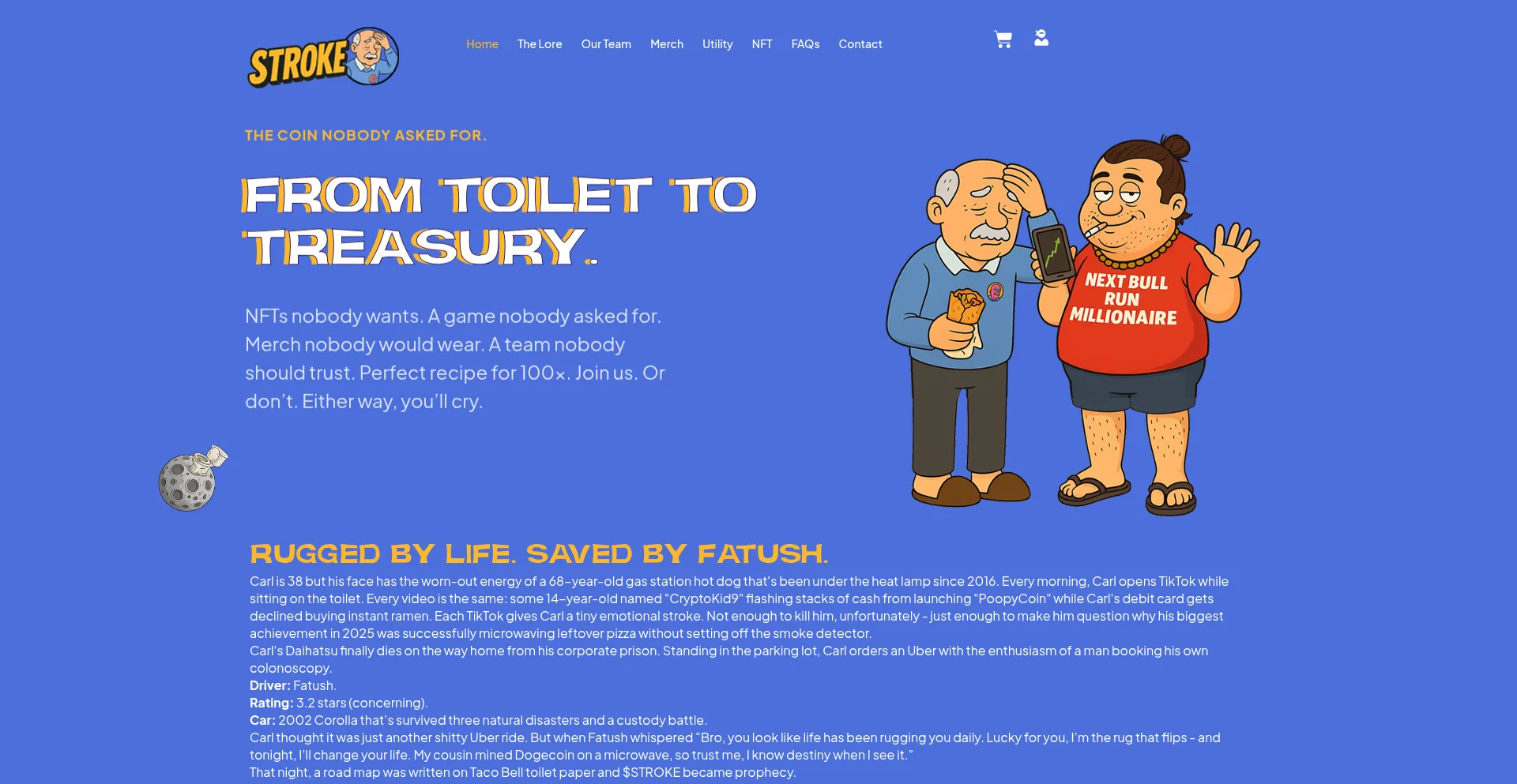 The memecoin written on Taco Bell toilet paper: chaos, merch, NFTs, regret & infinite stupidity. $STROKE has it all. Click if you hate yourself.