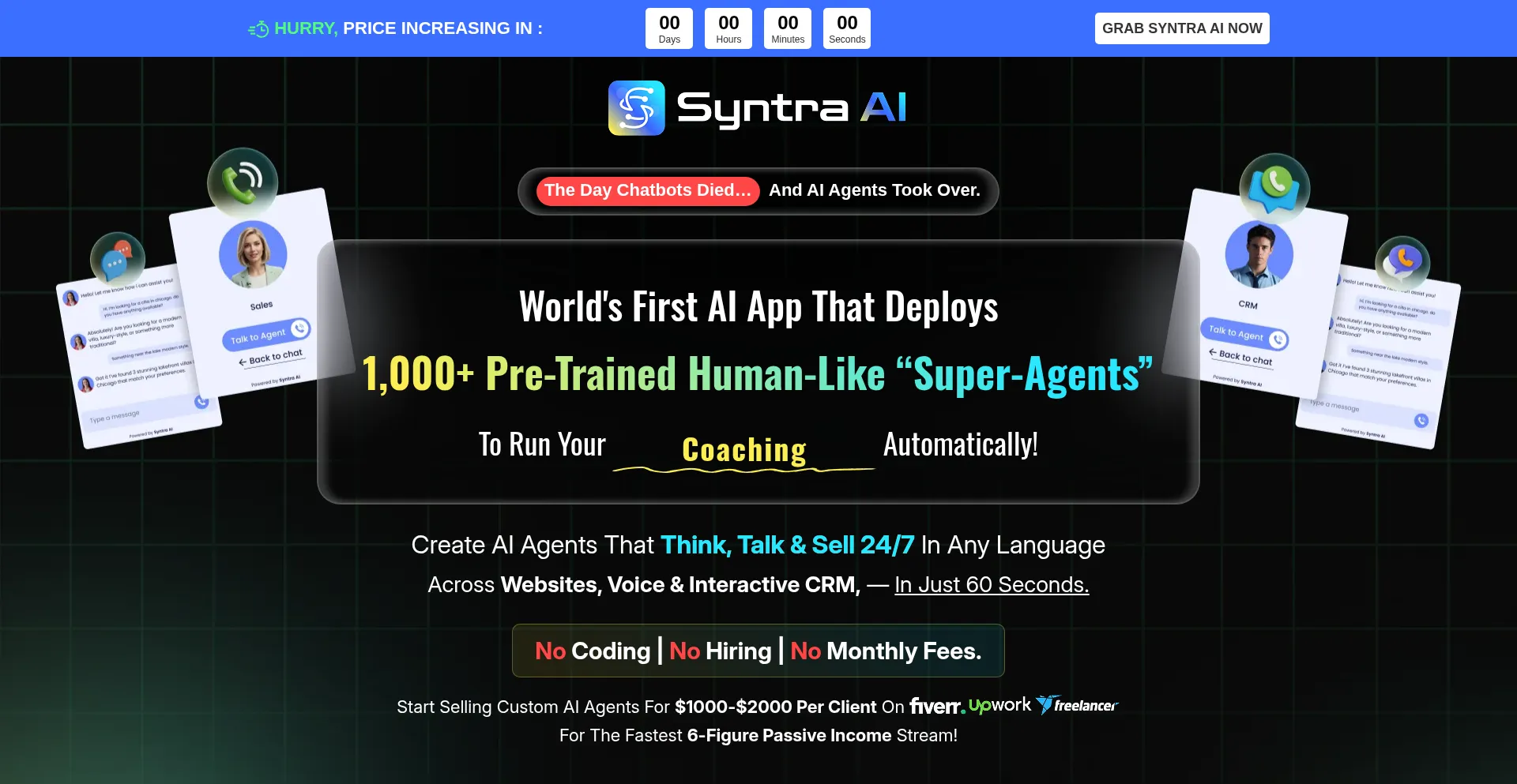 Launch 1000+ human-like AI agents for sales, support & automation. No coding. No hiring. Deploy in 60 seconds & scale your business 24/7.