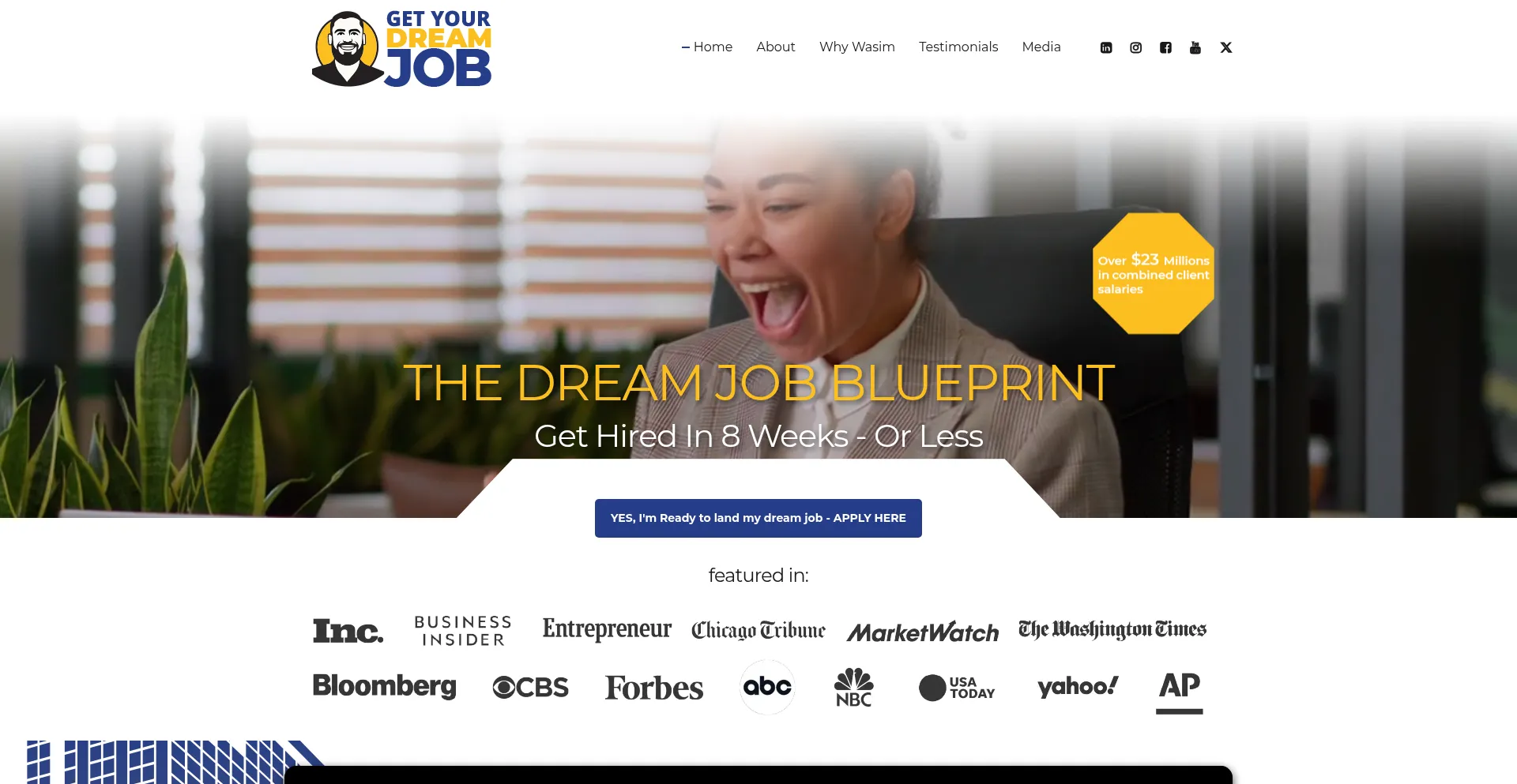 网站上存在社交媒体链接表明 getyourdreamjob.net 在社交媒体上维护官方账户,这是可信度和参与度的积极信号。
