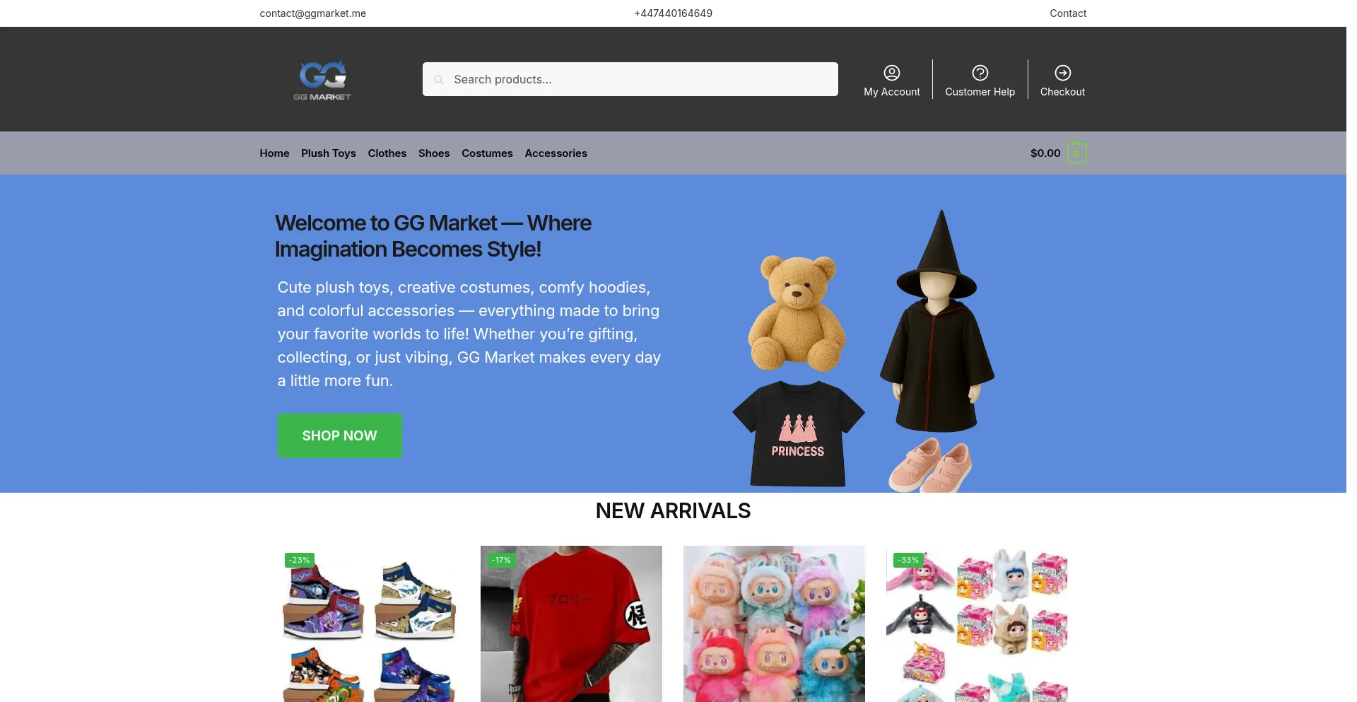 Welcome to GG Market — Where Imagination Becomes Style! Cute plush toys, creative costumes, comfy hoodies, and colorful accessories — everything made to bring