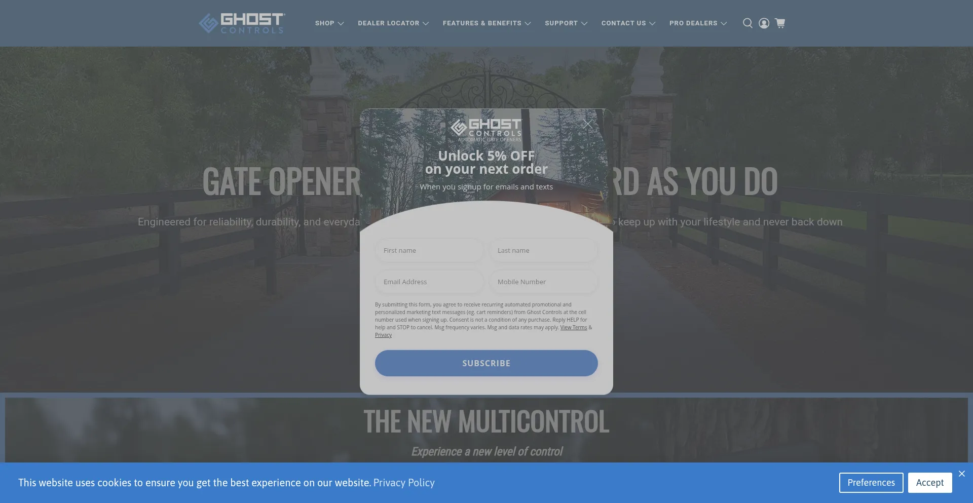 该网站实现数据收集表单,请求个人信息,包括姓名、电子邮件地址、电话号码或其他敏感详细信息。用户应验证 ghostcontrols.com 的合法性并在提交个人数据前查看隐私政策。