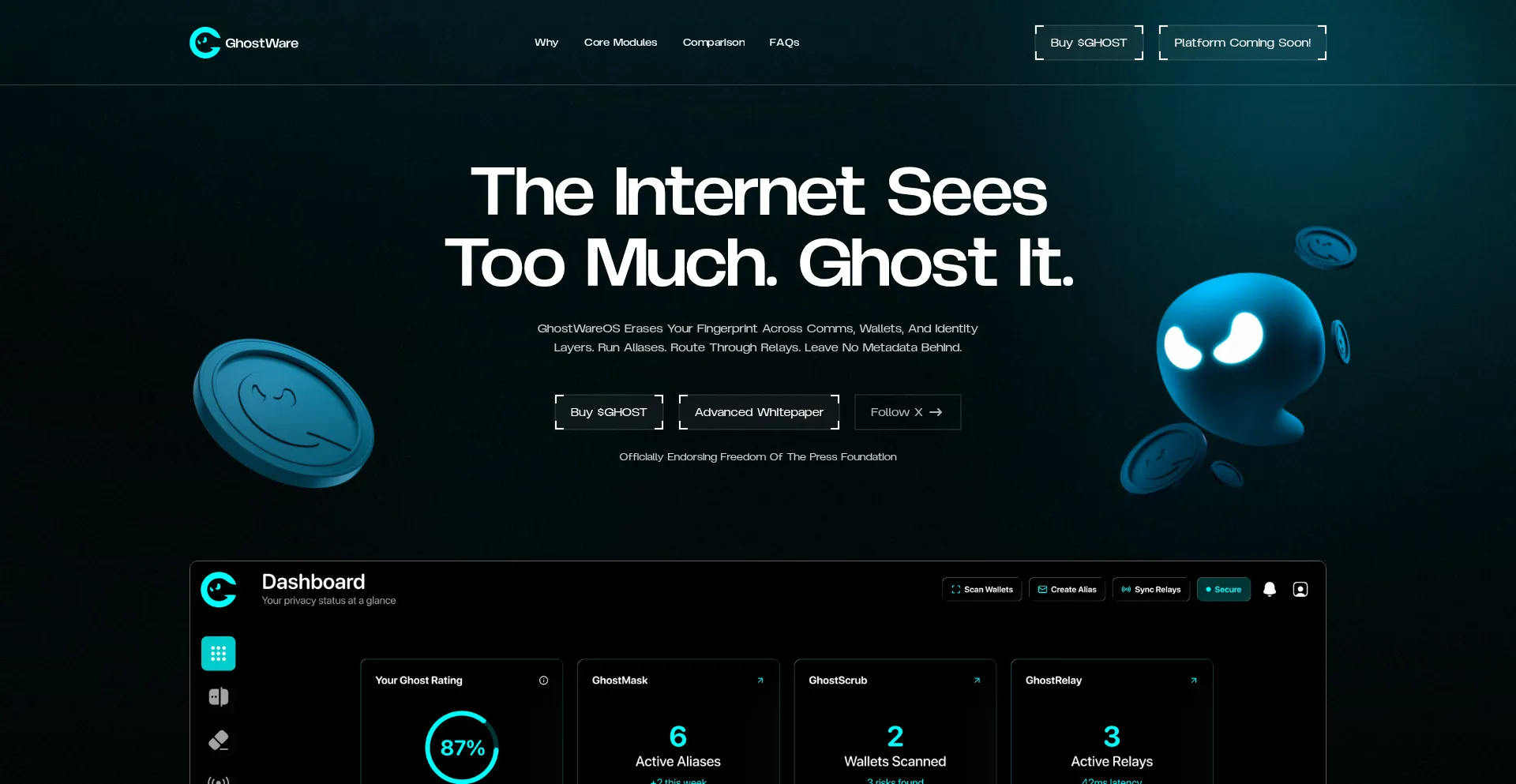 GhostWareOS erases your fingerprint across comms, wallets, and identity layers. Run aliases. Route through relays. Leave no metadata behind.