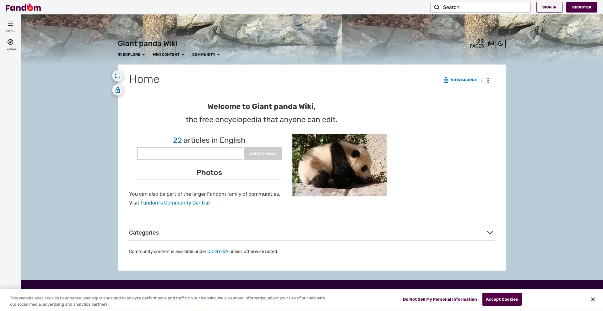 该网站实现符合GDPR或CCPA等隐私法规的cookie同意机制。这表明 giant-panda.fandom.com 遵守数据保护标准并为用户提供对个人数据收集实践的控制。